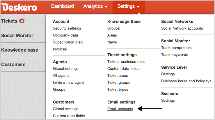 For Missed Chats - Configuring your Deskero support email in “Missed Visitor Notifications” will send only the missed chats notification to your Deskero.