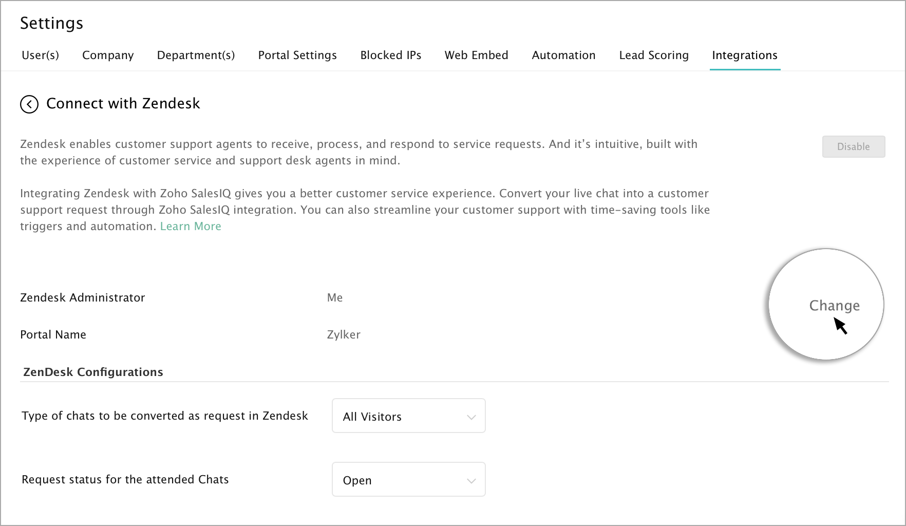 Adding a new Department In Zoho SalesIQ and Integrating with Zendesk