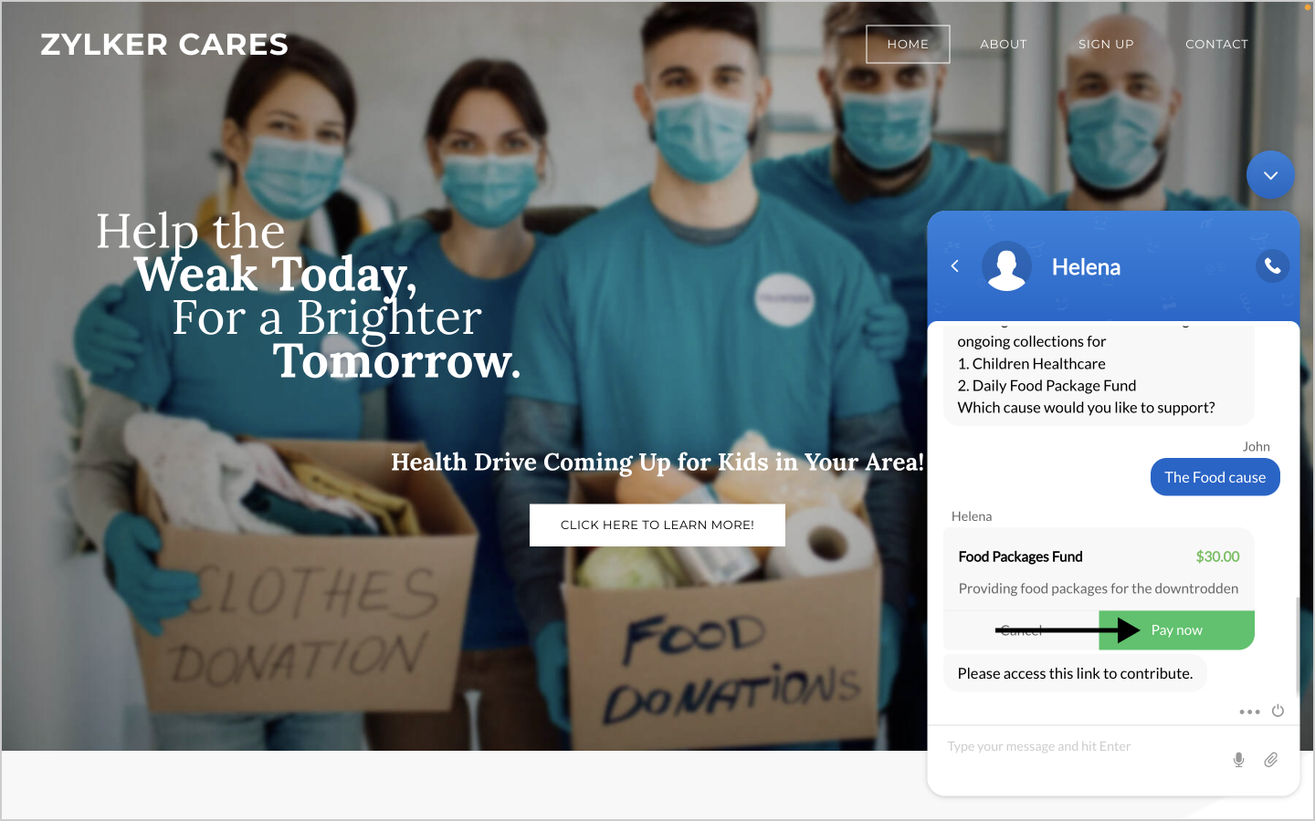 When SalesIQ is integrated with Checkout, visitors will be able to make payments during the chat conversation with an operator or bot from within the SalesIQ chat widget.