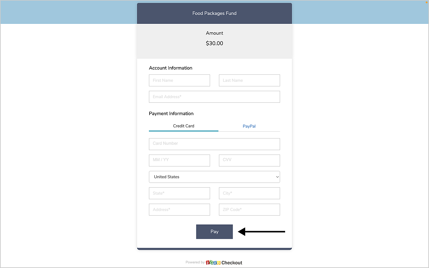 - If the visitor wants to cancel the payment at any point, they can do so by clicking the Cancel button in the Payment card.