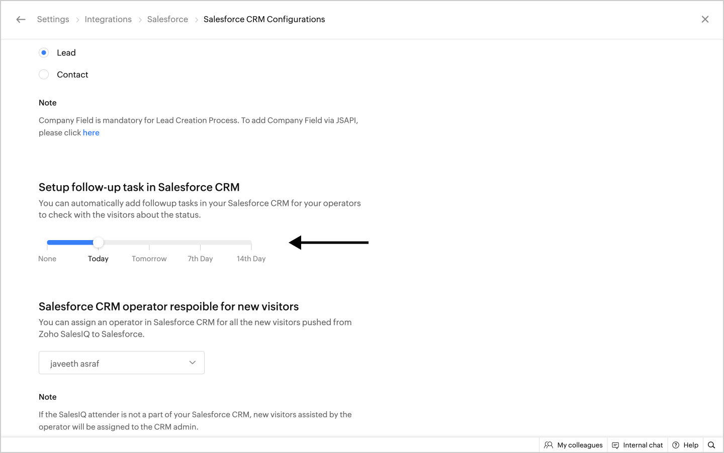 Do remember that if you choose to assign the visitors to the SalesIQ attender and if they aren't a part of your Salesforce account, then they will be assigned to the Salesforce admin.