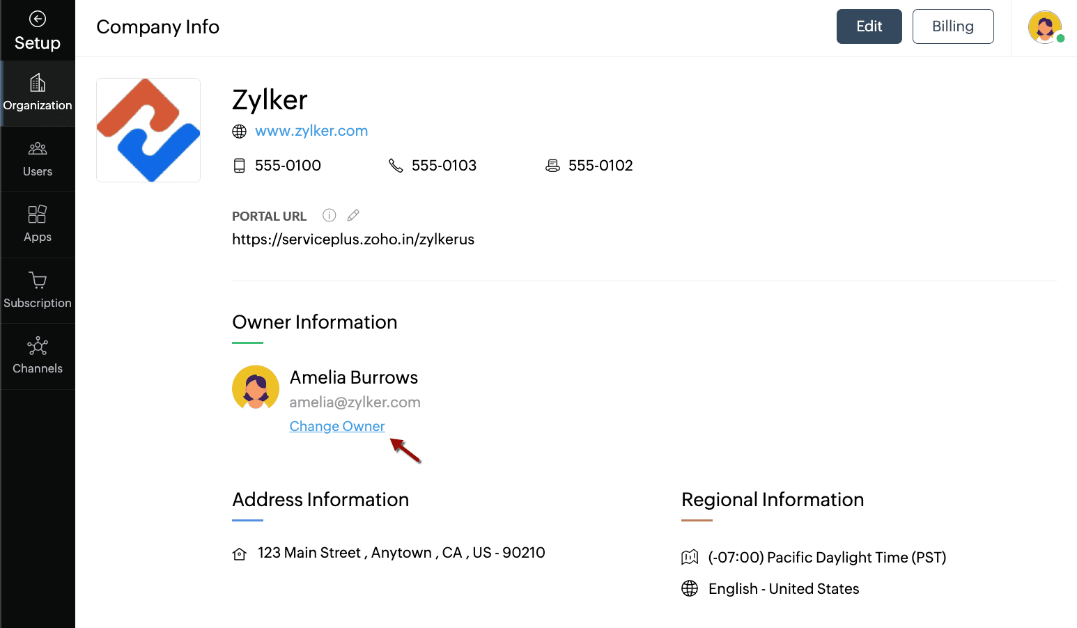 - Click Change Owner next to the Owner Information.
