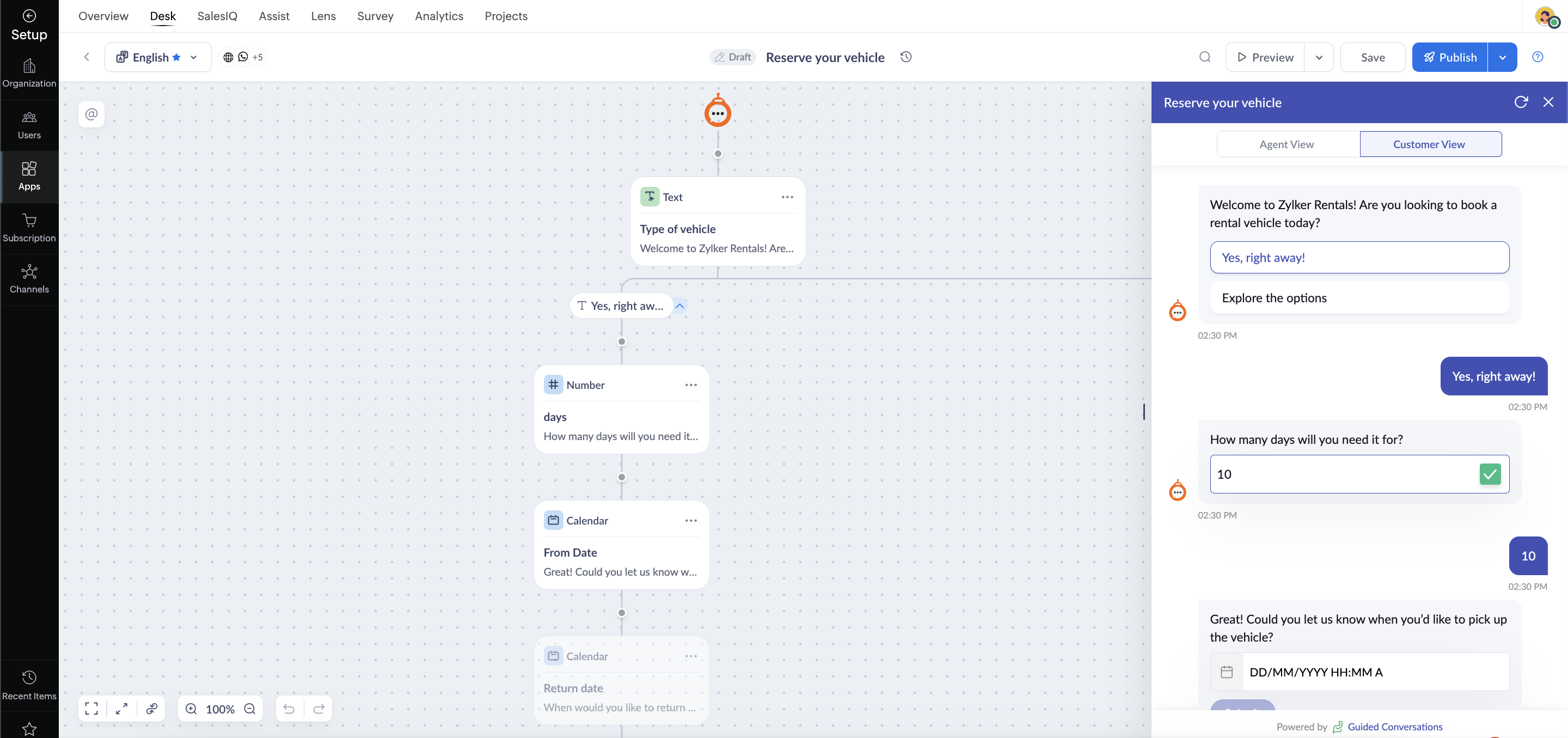 - Guided Conversations - A conversational self-service platform that steers conversations by asking relevant questions through a predefined chat and systematically leads your customers to the best solution.