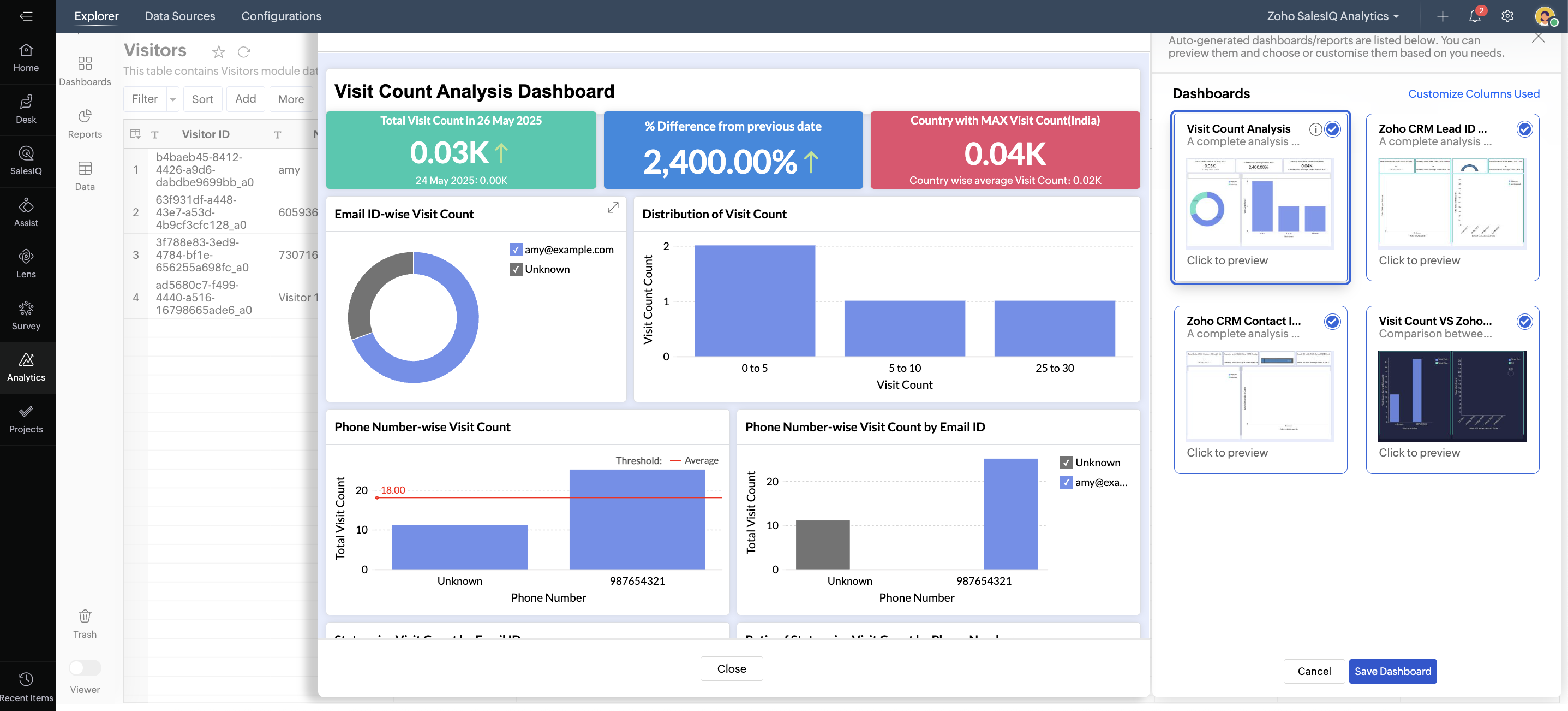 - Analytics - Auto analysis help generate reports and dashboards from your data using MI and AL techniques. Data blending combines data from various sources to build cross-functional visualizations.
