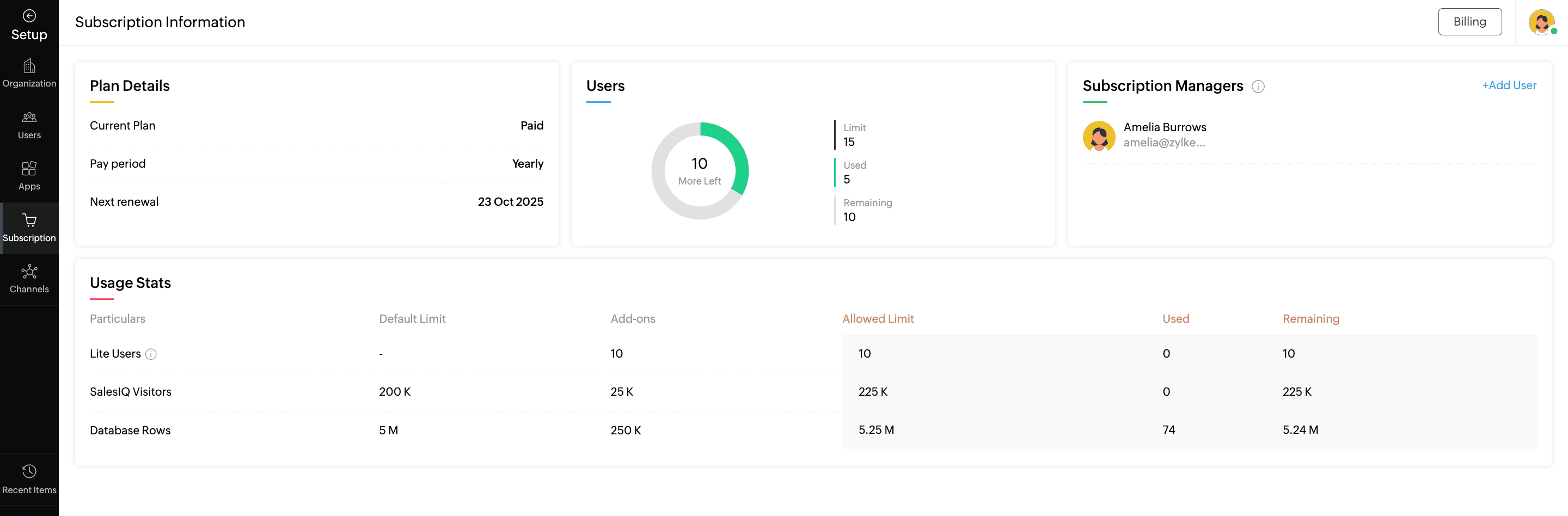 - There are application-specific add-ons to increase the number of light users, website visitors, and database rows, which might need to purchase in addition to the subscription.