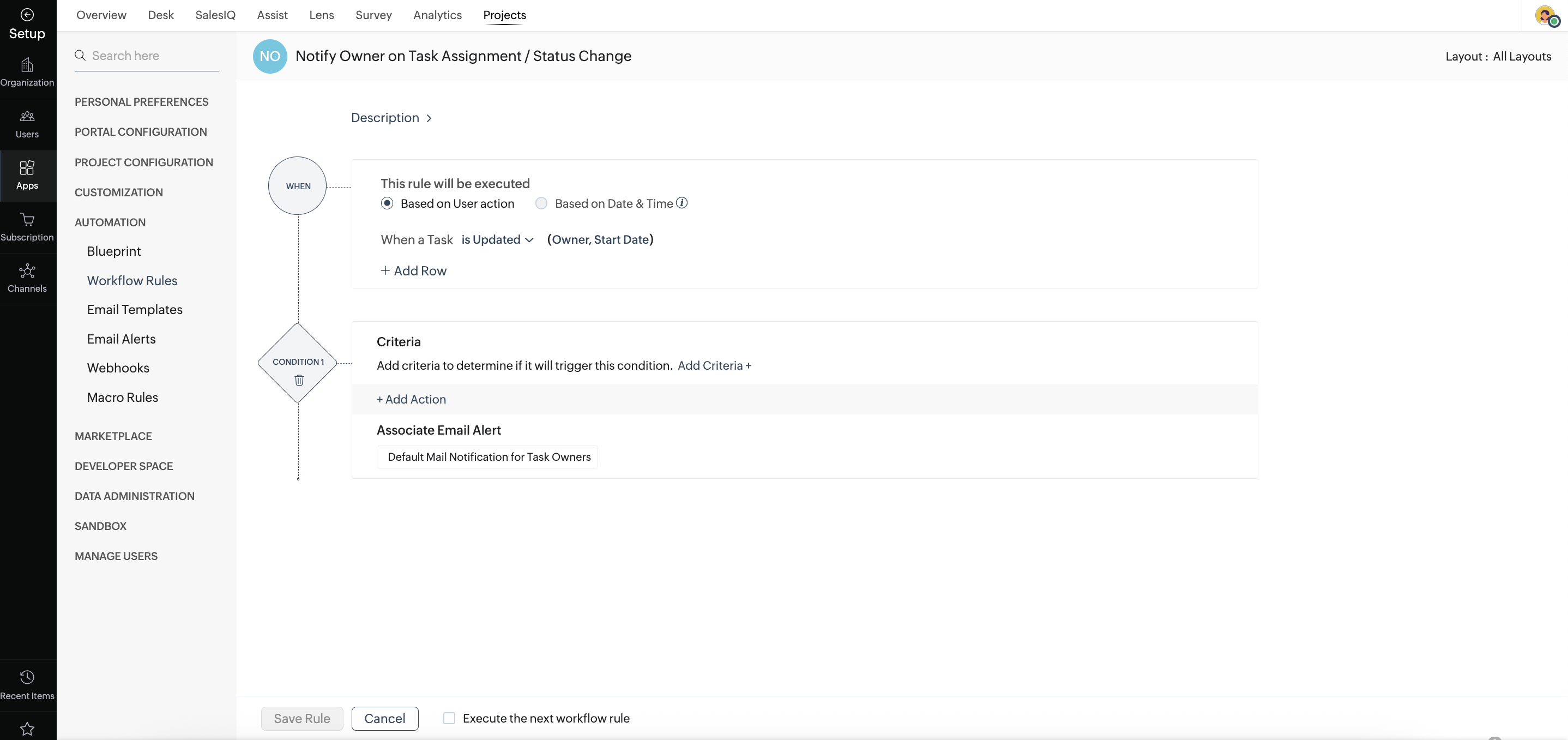 - Projects - Blueprints, workflow and business rules, custom functions, service levels, and webhooks help skip the extra work while working on your tasks and processes.