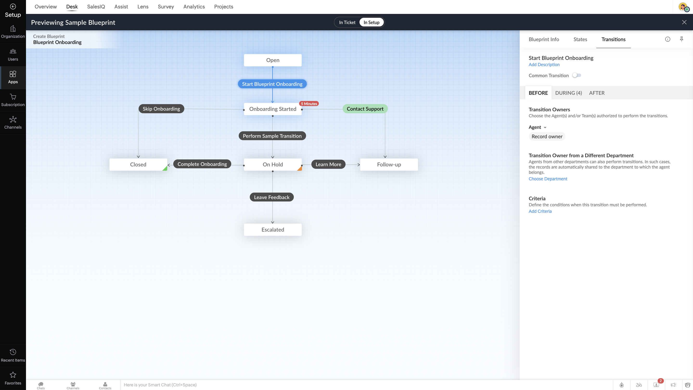 - Desk - Service levels, contracts, automated ticket assignments, escalations, notifications, macros, custom predictions, and process automations (like workflows and blueprints) help respond faster and better.
