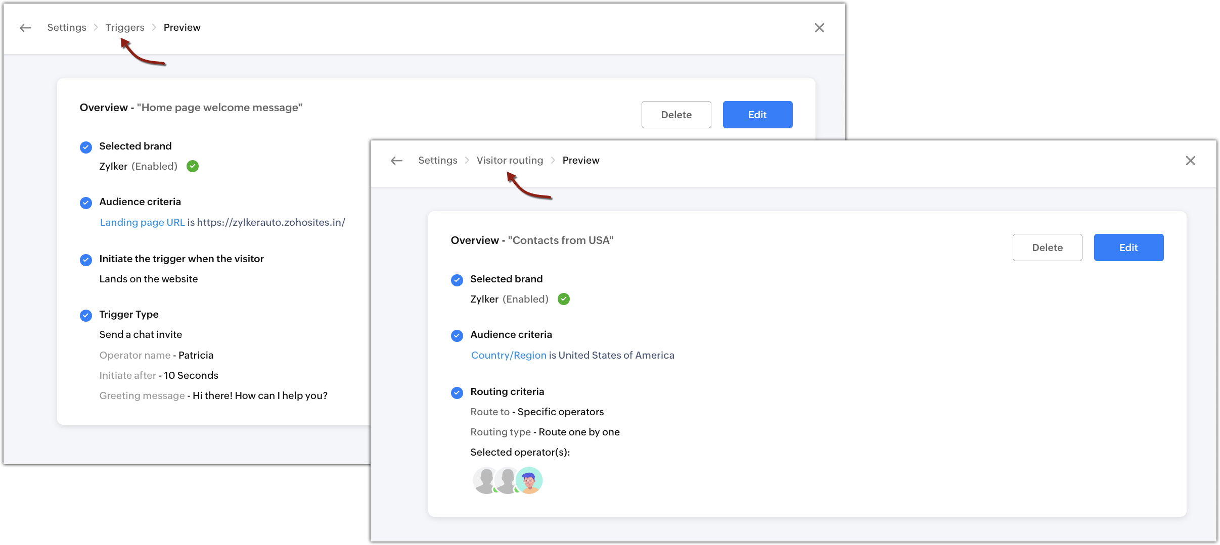 - SalesIQ - Triggers, lead scoring, chat routing, call routing, and visitor routing help deliver efficient customer support through your existing web presence.