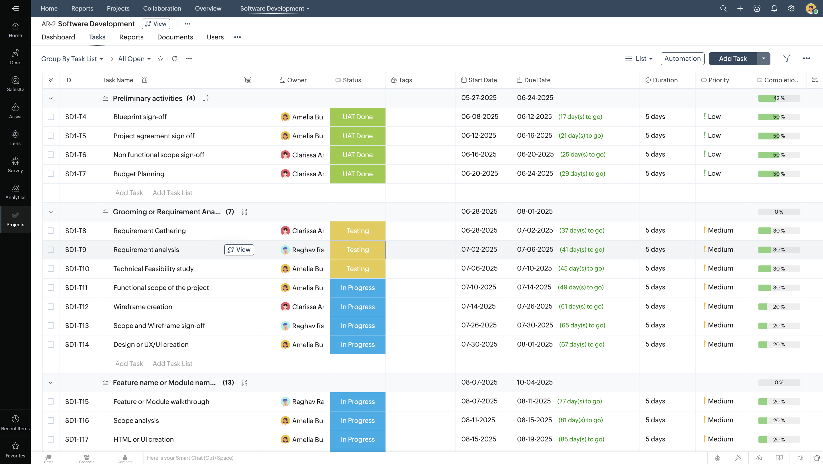 When you sign up for Service Plus, you'll see a sample project demonstrating many of Zoho Projects' features. In addition to this, you can create a new project to suit your team's needs and workflow. For example, you can create a private or public project with custom tabs that start and end at a specified time. Next, you can add tasks and assign them to the project's users to get them to work on them quickly.