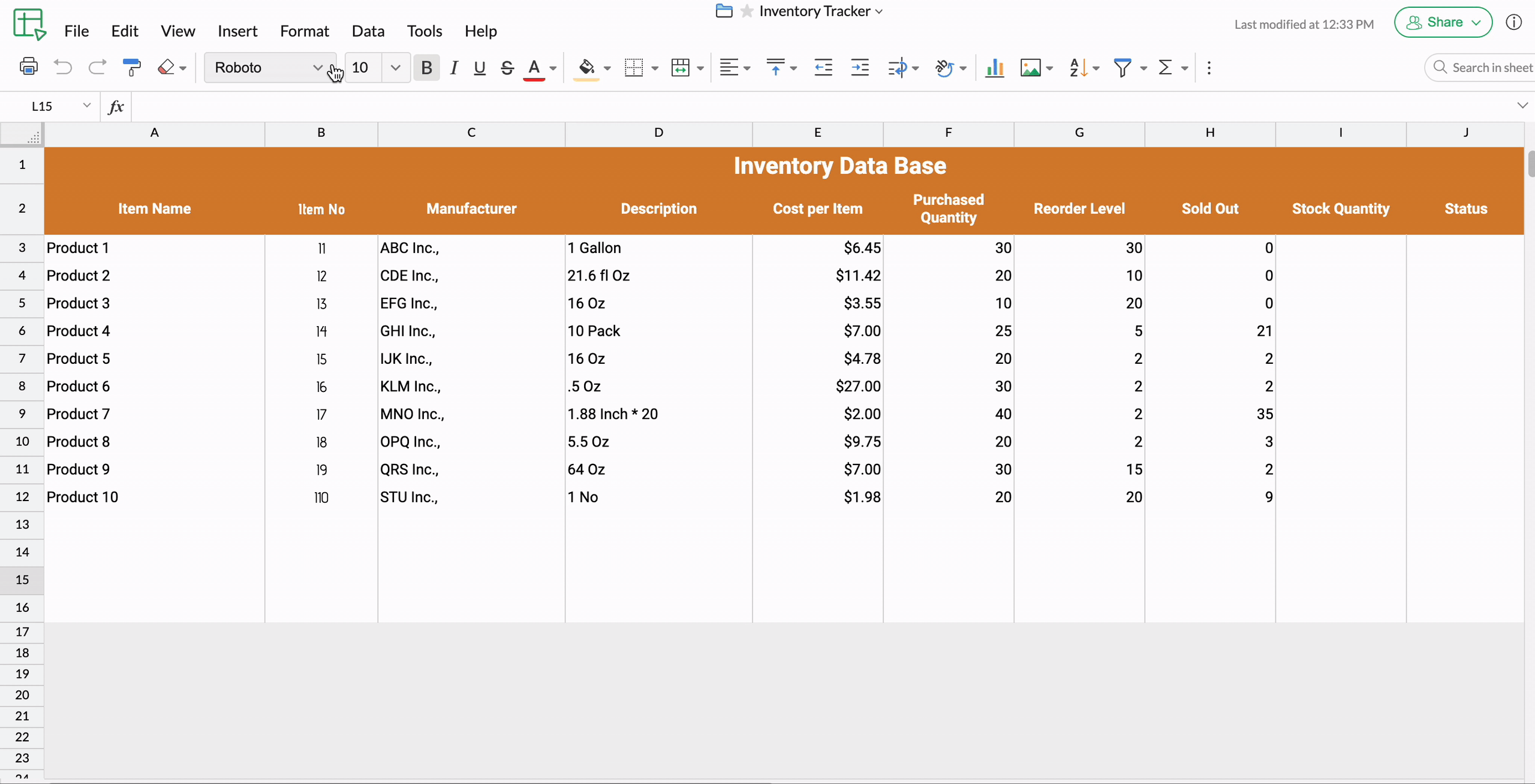 The default font style in a spreadsheet is Roboto. To change the font style of text in a cell: