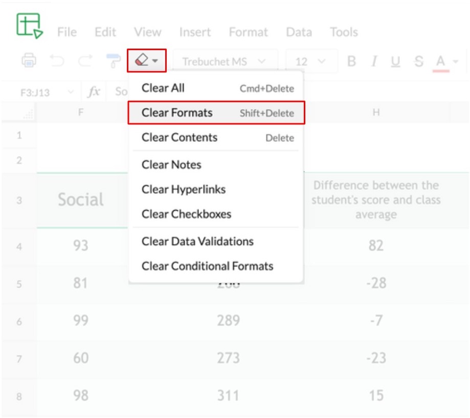 To clear the formatting of a cell: