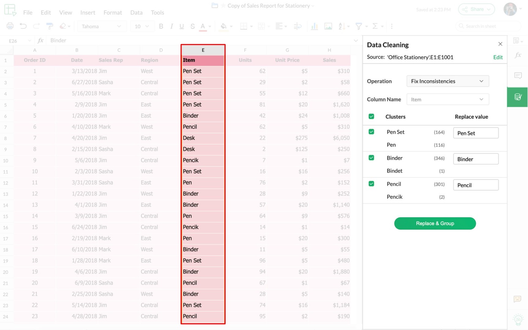 4. The tool will list down capitalization errors, typos and inconsistent spellings in the column. Eg: Laptop, laptop, Lap top