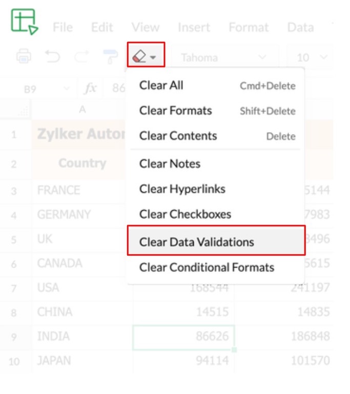 1. Choose the particular cell or the range of cells from which you want to clear data validation.