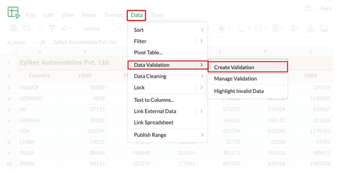 You can also set a legend near a particular cell that uses data validation to regulate its data and a warning error alert when the data validation condition is not followed. It can be done from the Data Validation box.