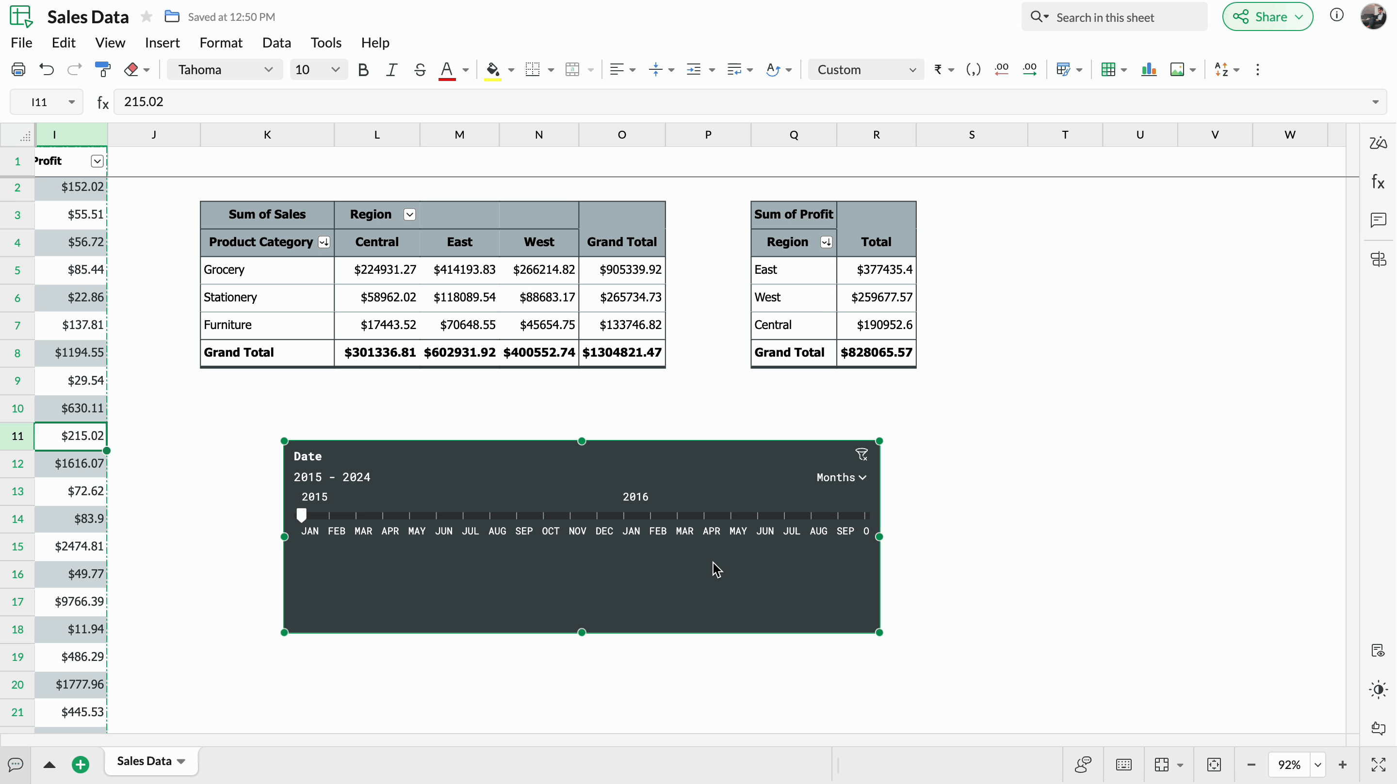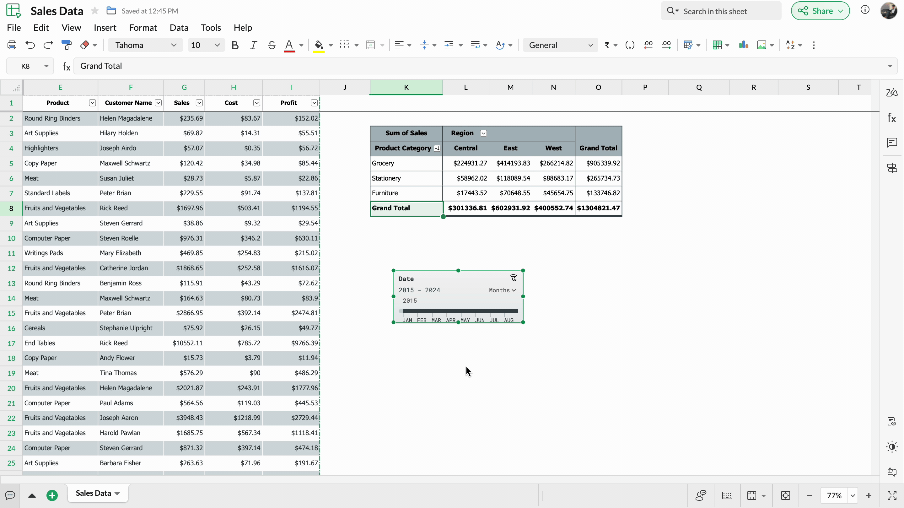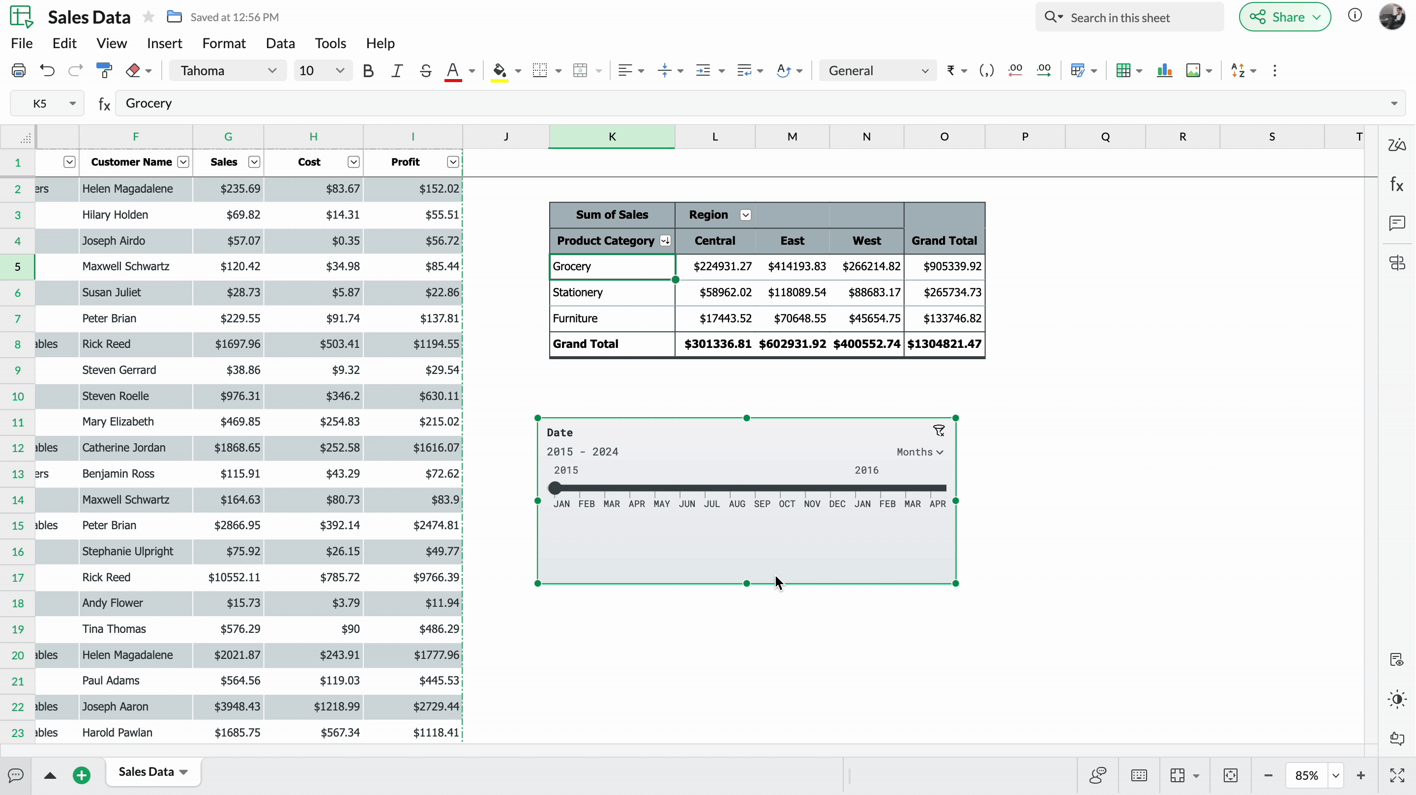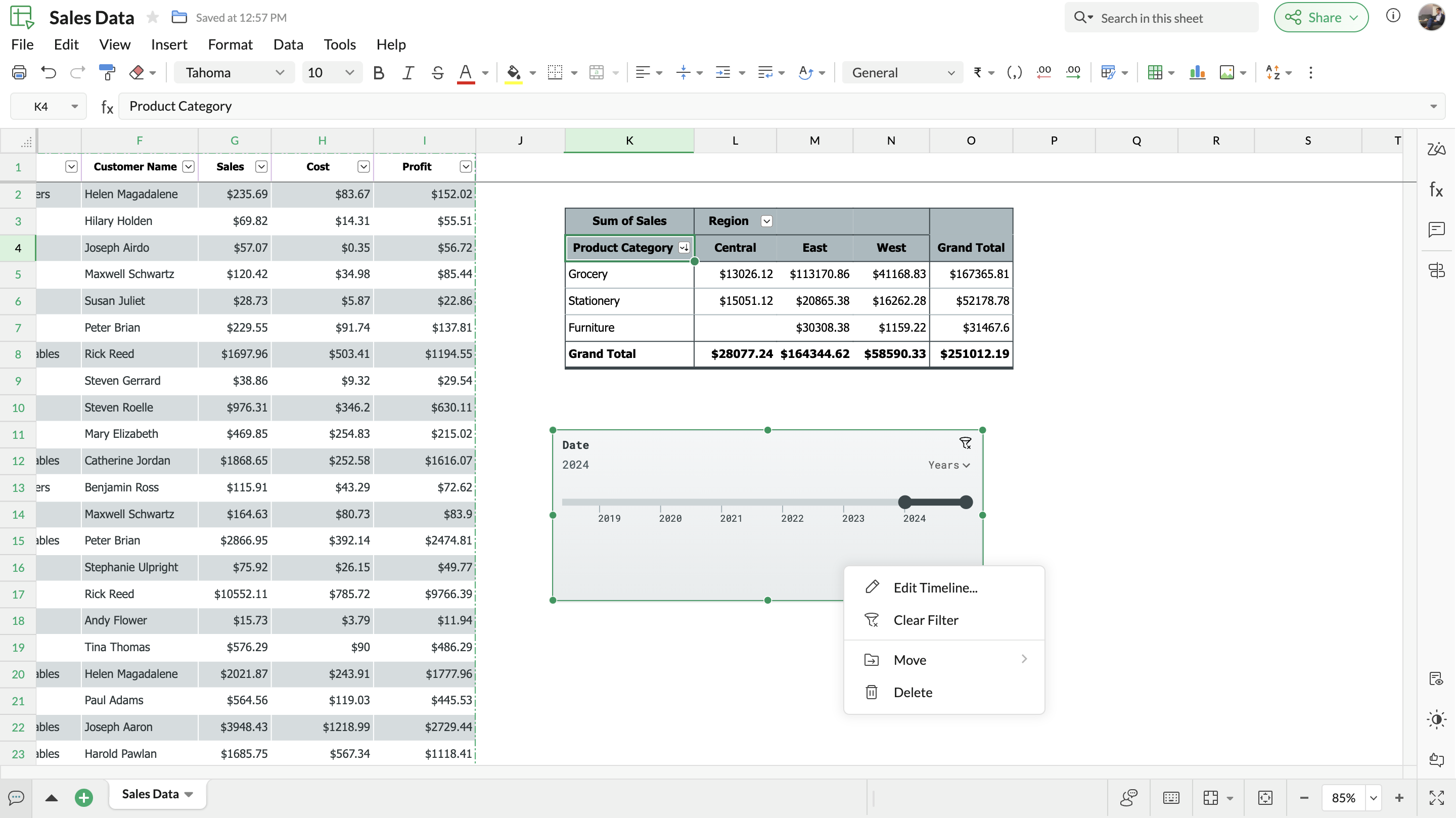 Filter data in pivot tables based on dates with timeline | Zoho Sheet Help Guide