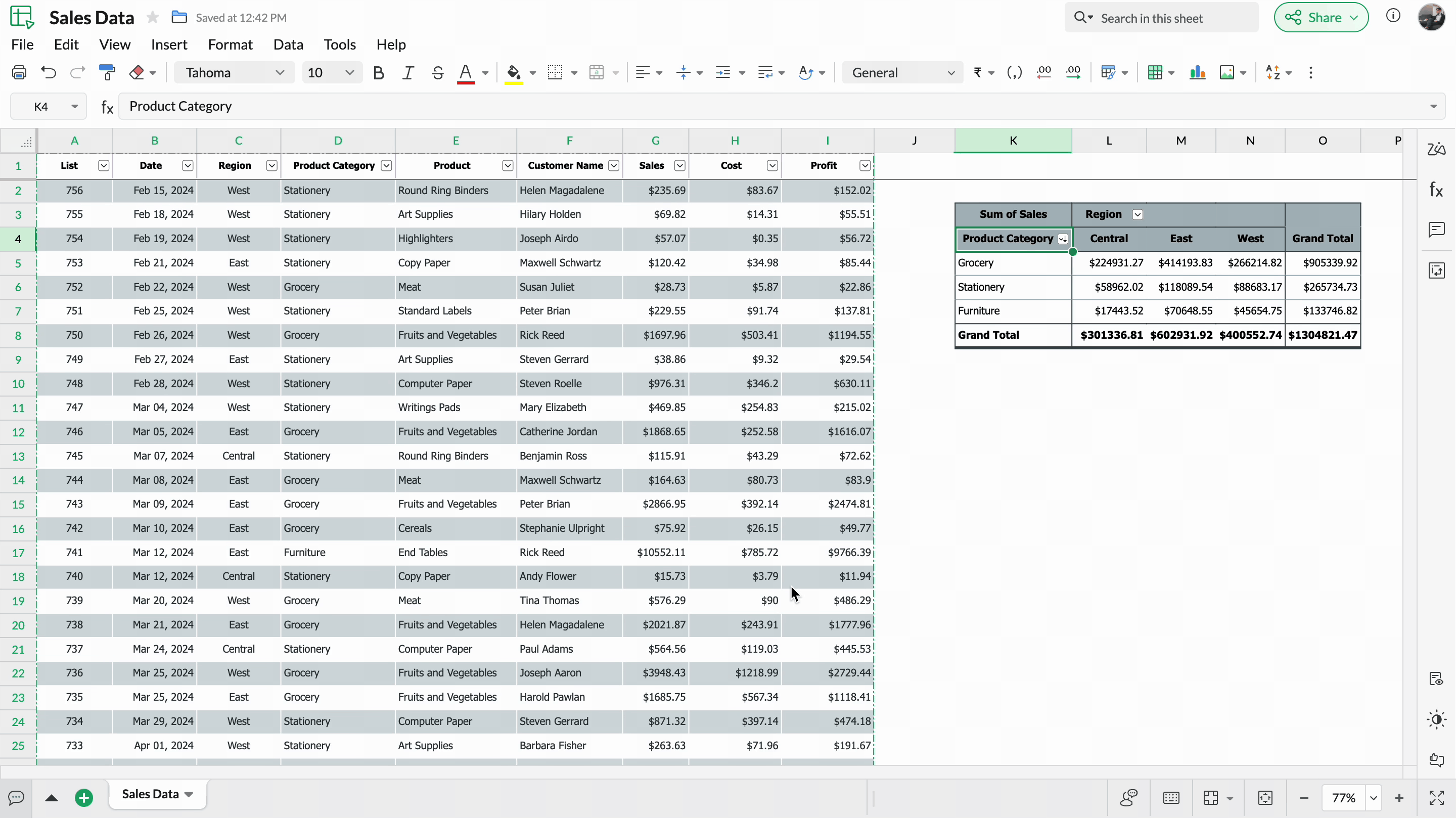Create a pivot table in sheet To create a pivot table: Click Data > Pivot Table. Choose the range of cells from which the table is to be constructed and where the table must be created Drag and drop the fields into the desired positions in the Pivot ...