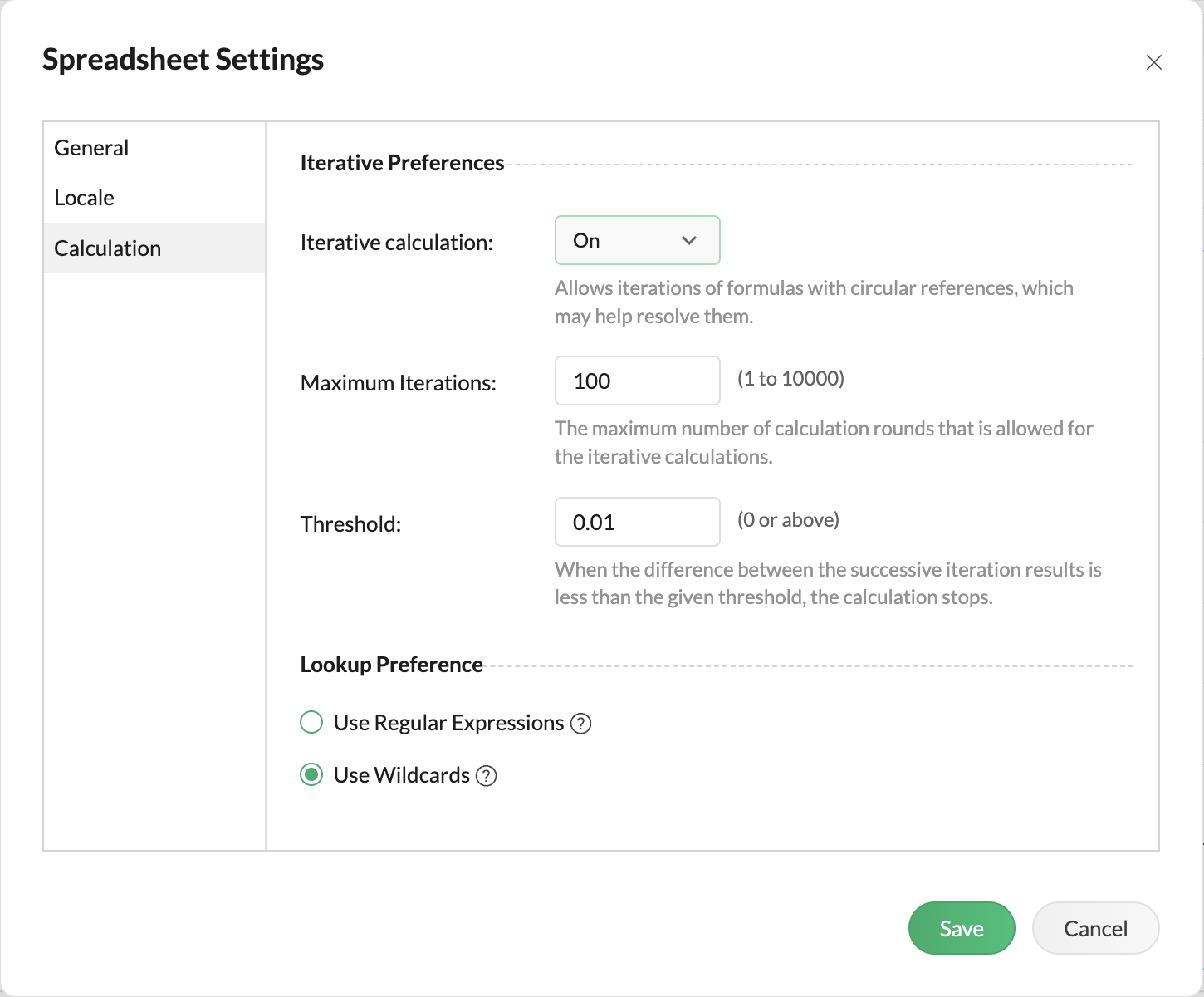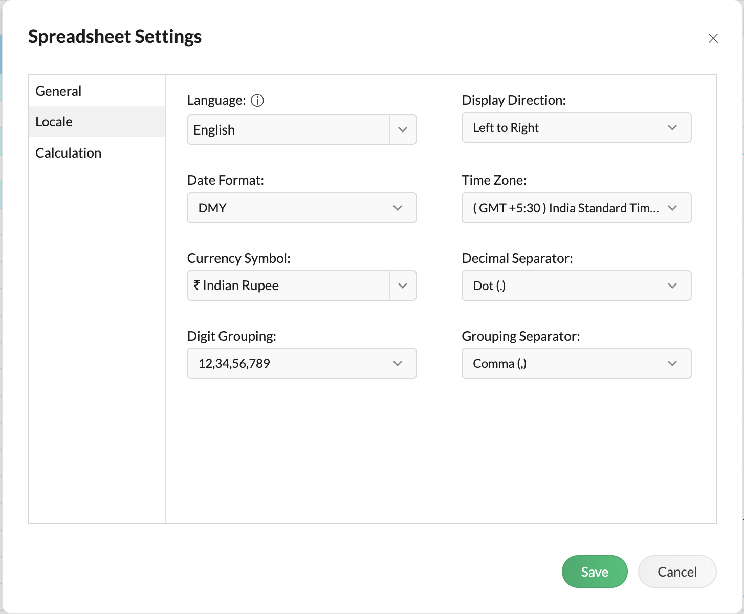 Spreadsheet locale and calculation settings | Zoho Sheet help guide