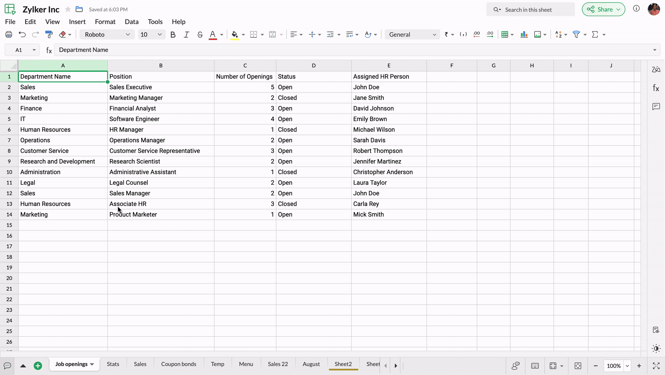 Search for the sheet name in your workbook | Zoho Sheet Help Guide