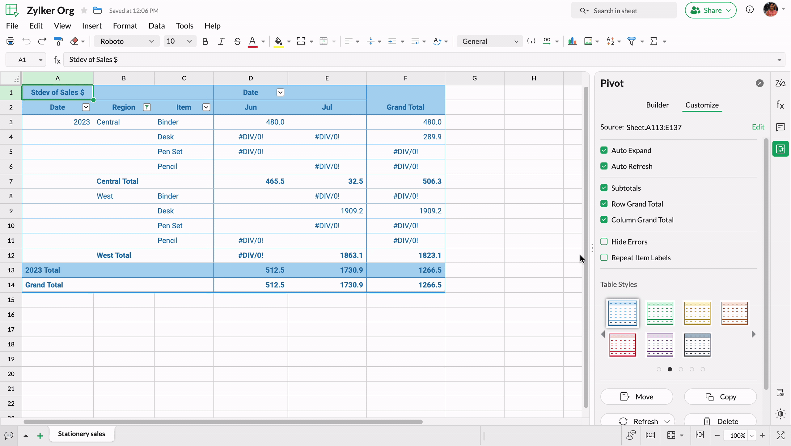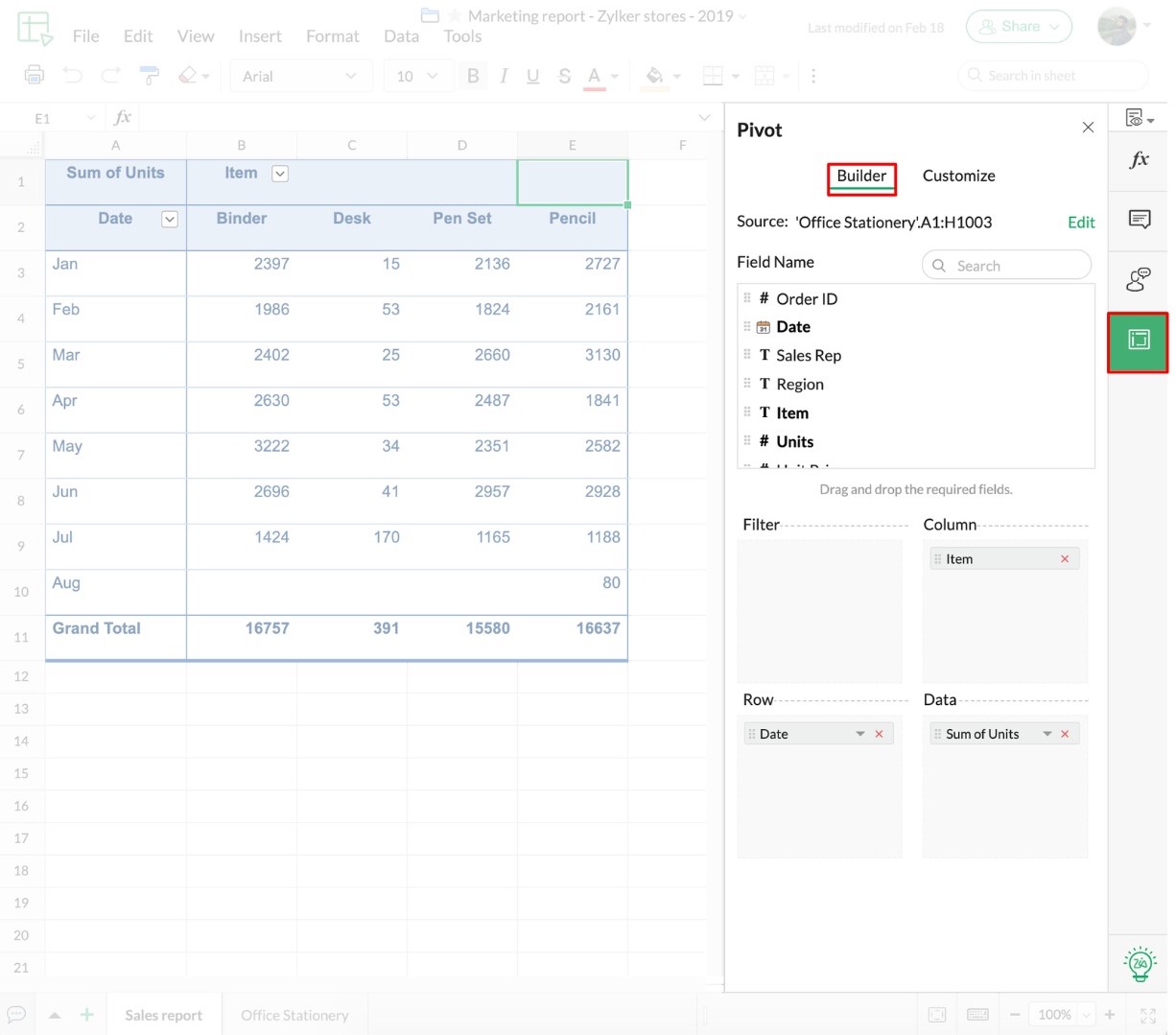 Create pivot tables to analyse your data | Zoho Sheet Help Guide