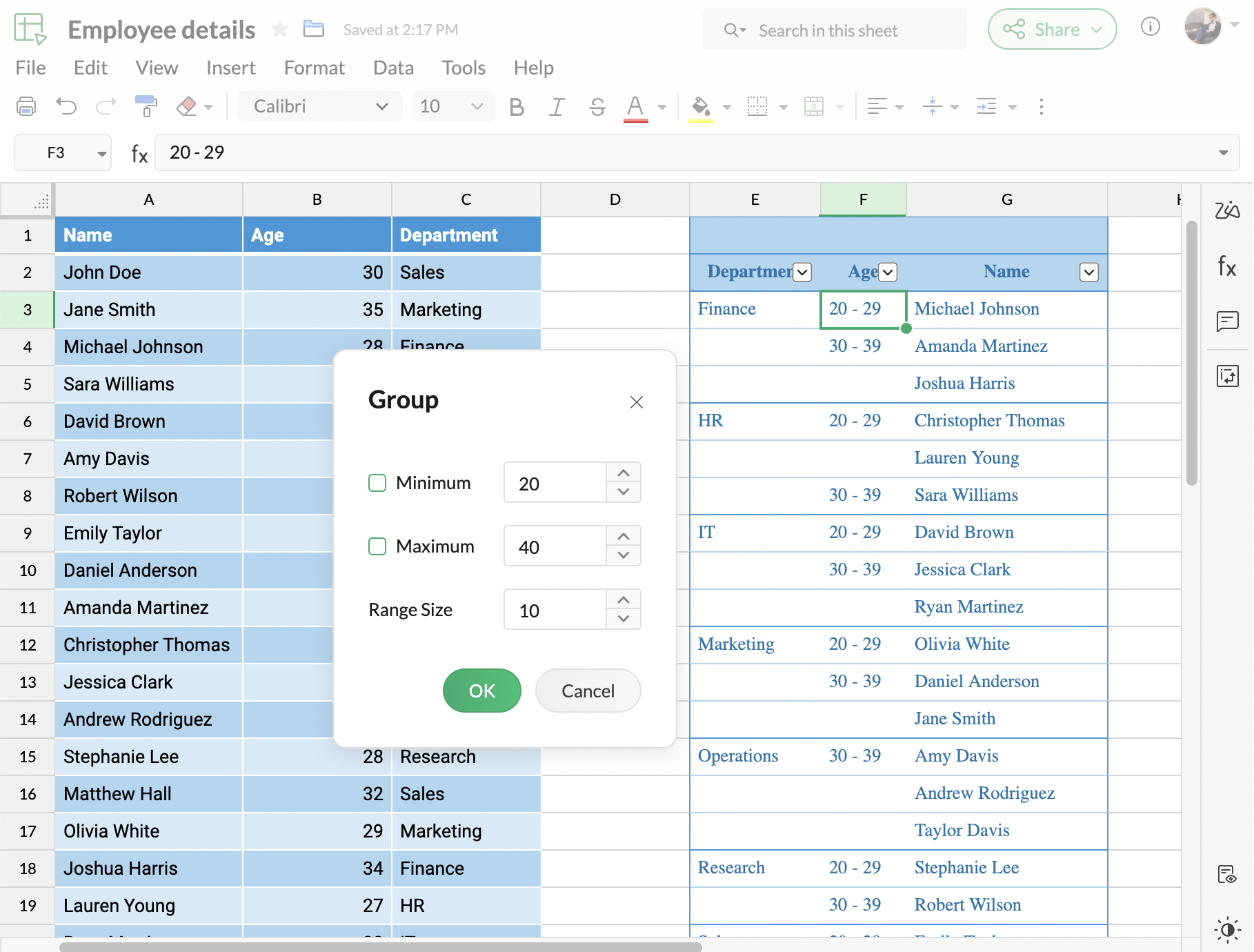 2. Edit the minimum, maximum, and the range values as needed. Click OK.