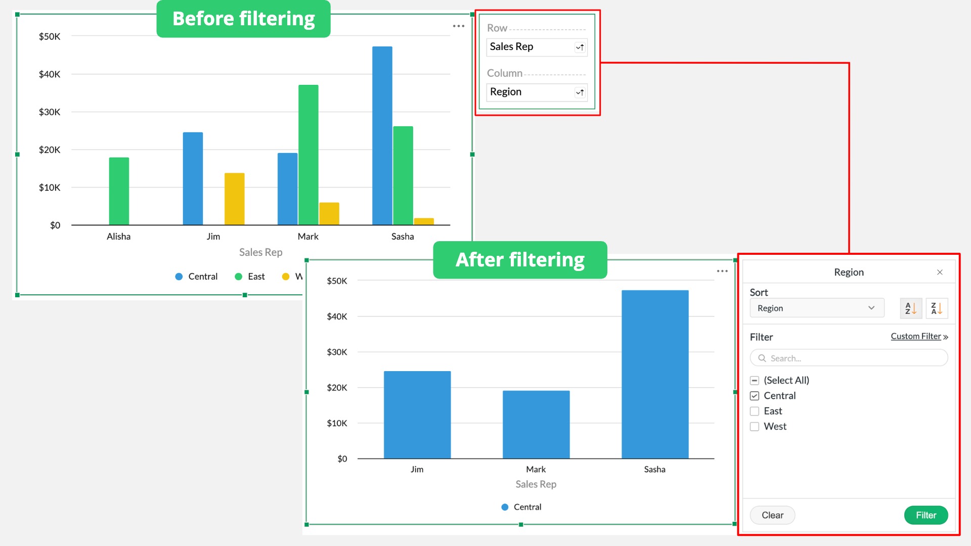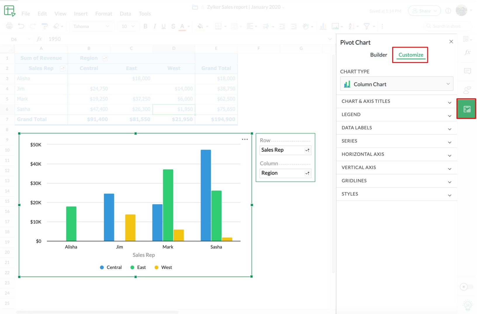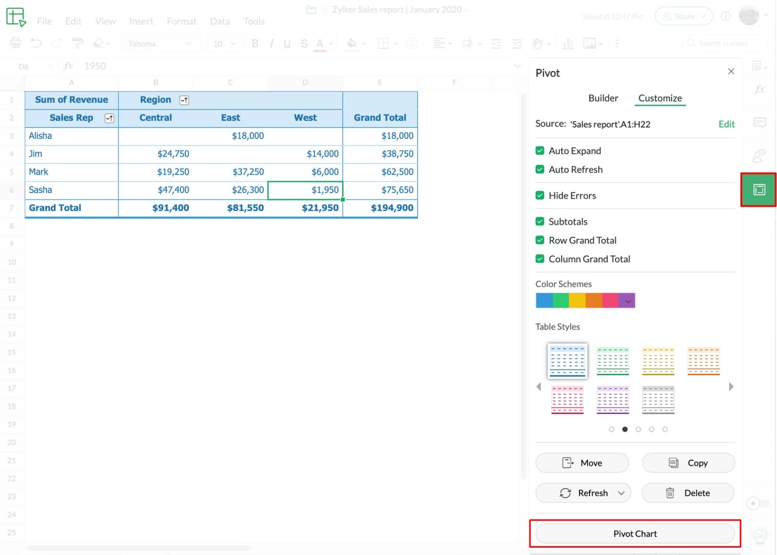 Pivot charts, like the name suggests, lets you visualize the data while simultaneously letting you slice and dice the data just like a pivot table. Like any other chart, you can even customize how a pivot charts looks.
