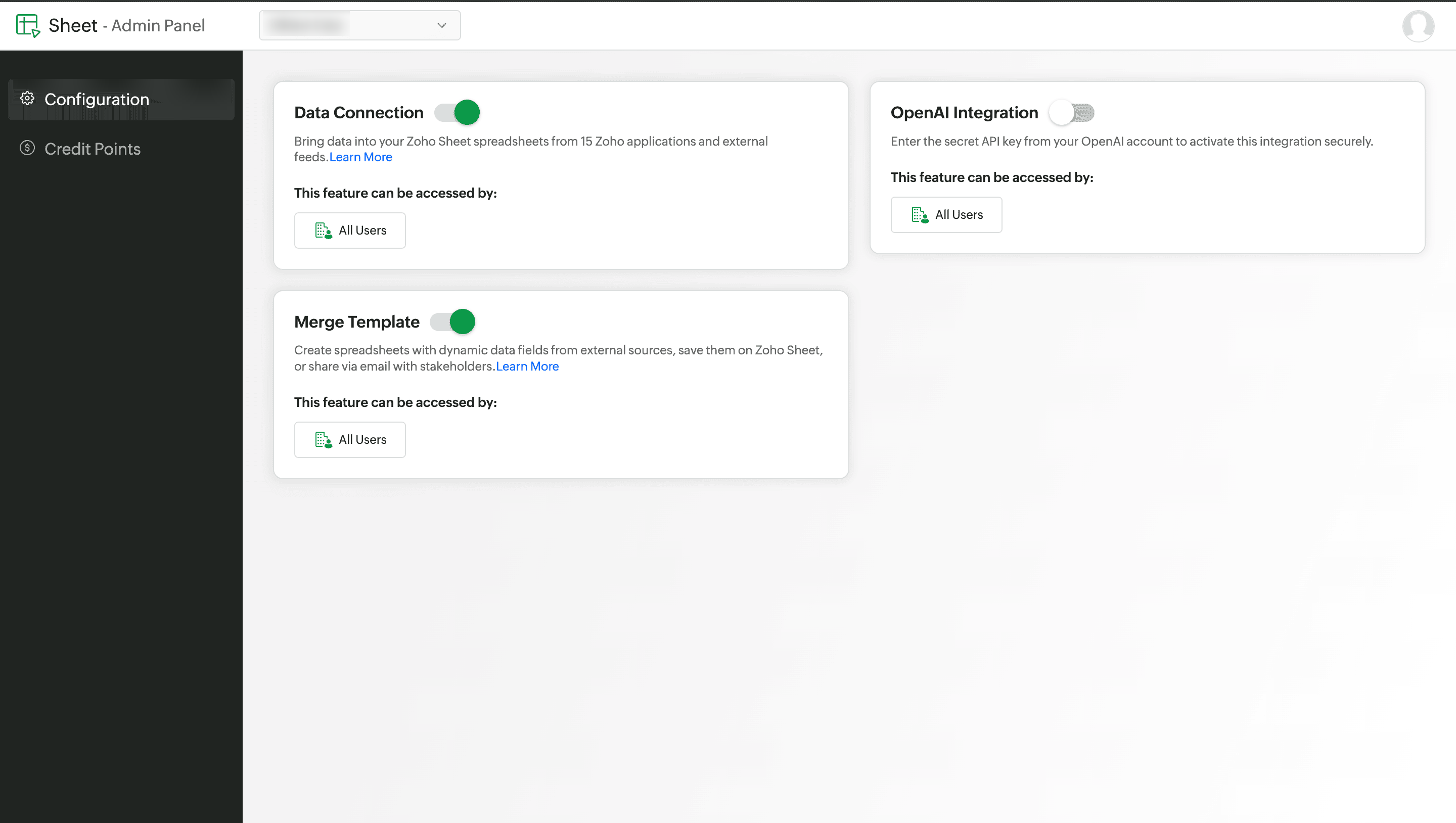 • Configure and enable OpenAI in Zoho Sheet