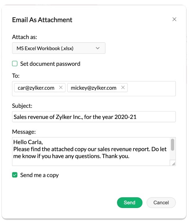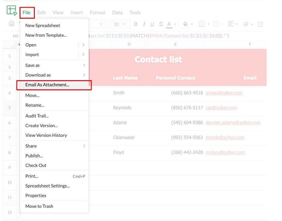 Send a spreadsheet as an email attachment | Zoho Sheet Help Guide
