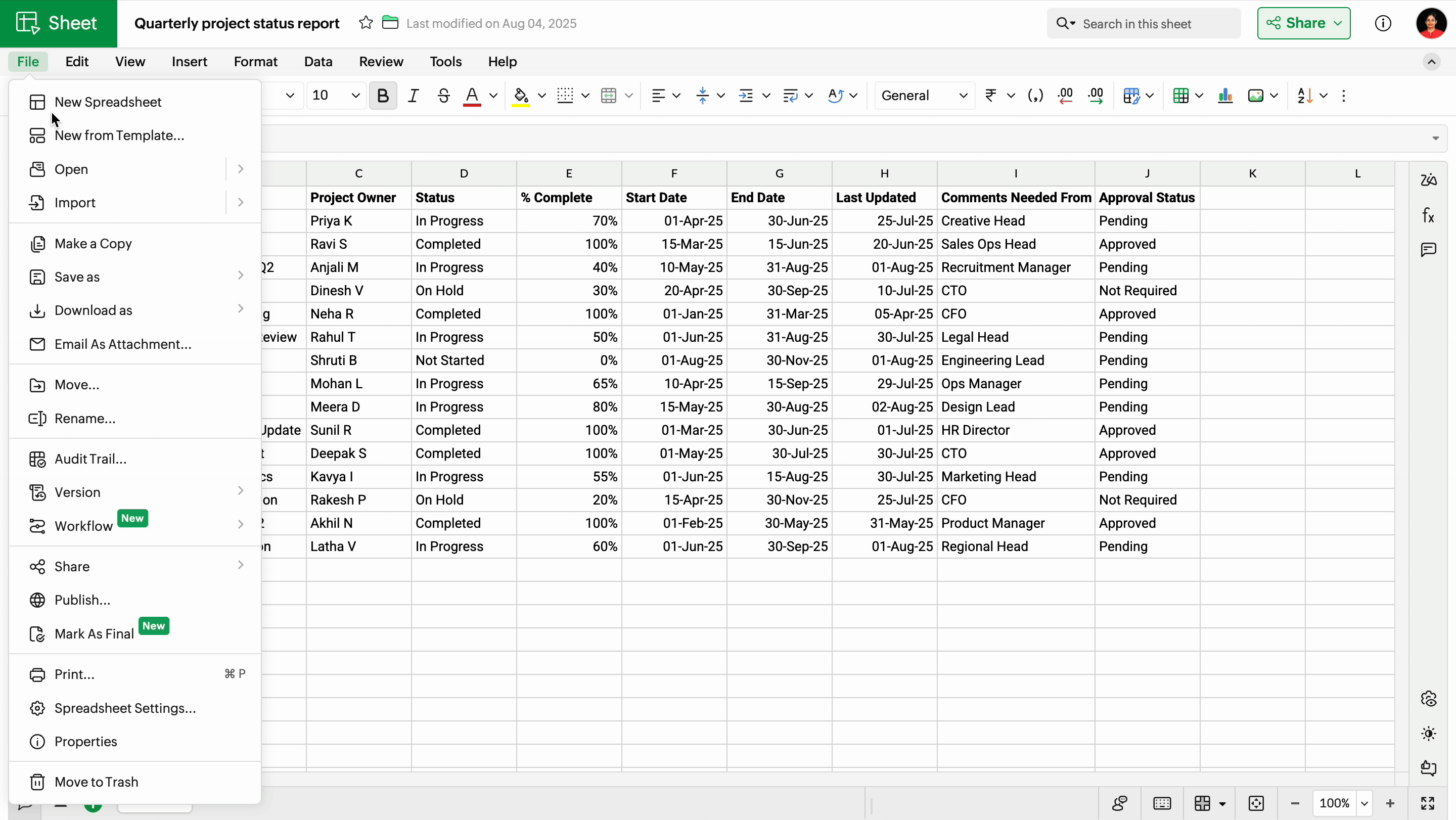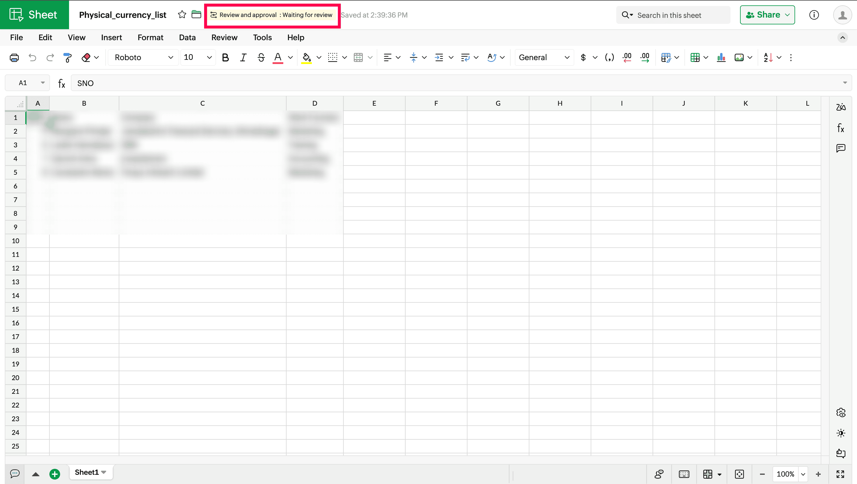 Let's say you are working on a quarterly budget report and want it to be reviewed by the finance team and then approved by the finance director. Zoho Sheet has covered you with a set of predefined workflows that can be set for your spreadsheet files.