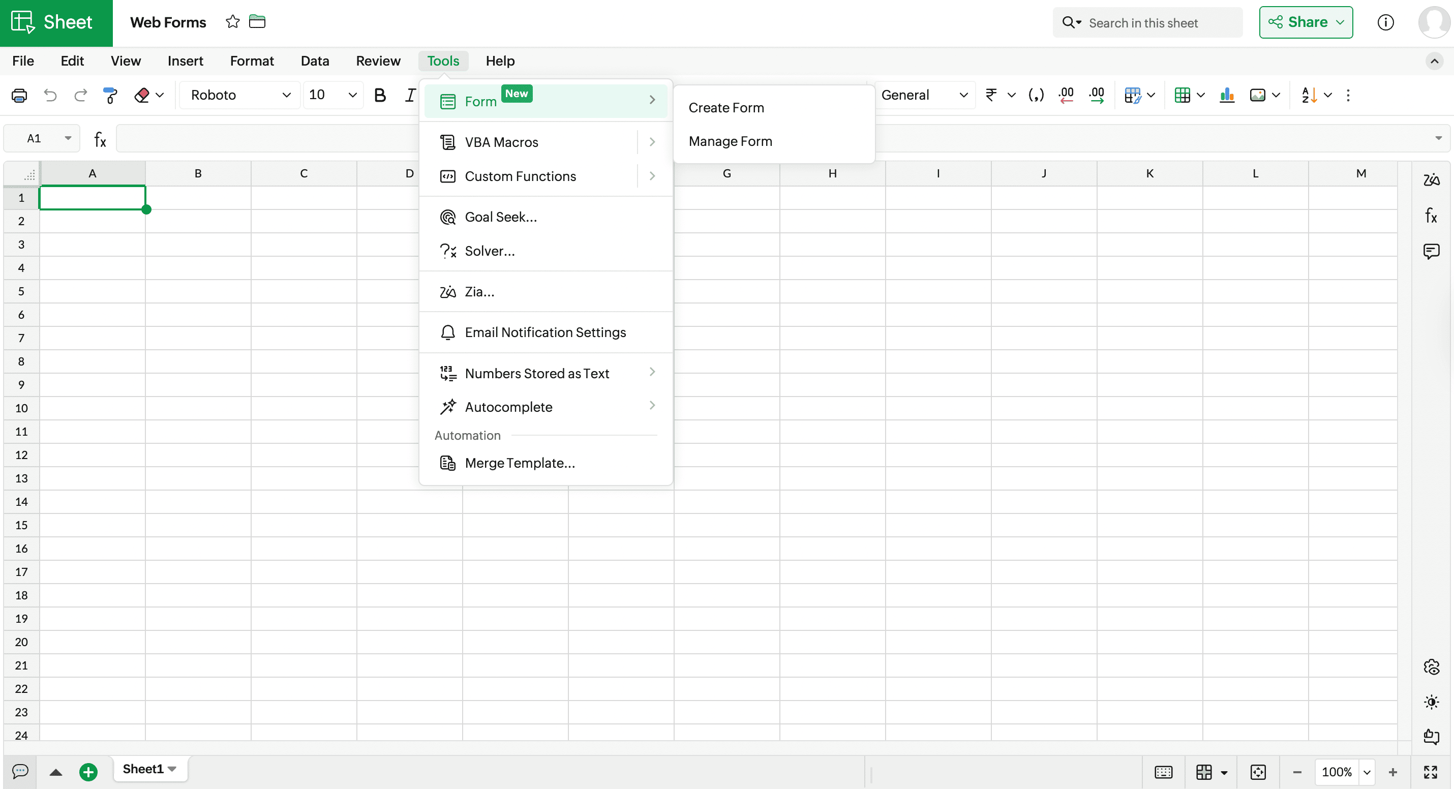 Navigate to Tools > Form > Create Form.
