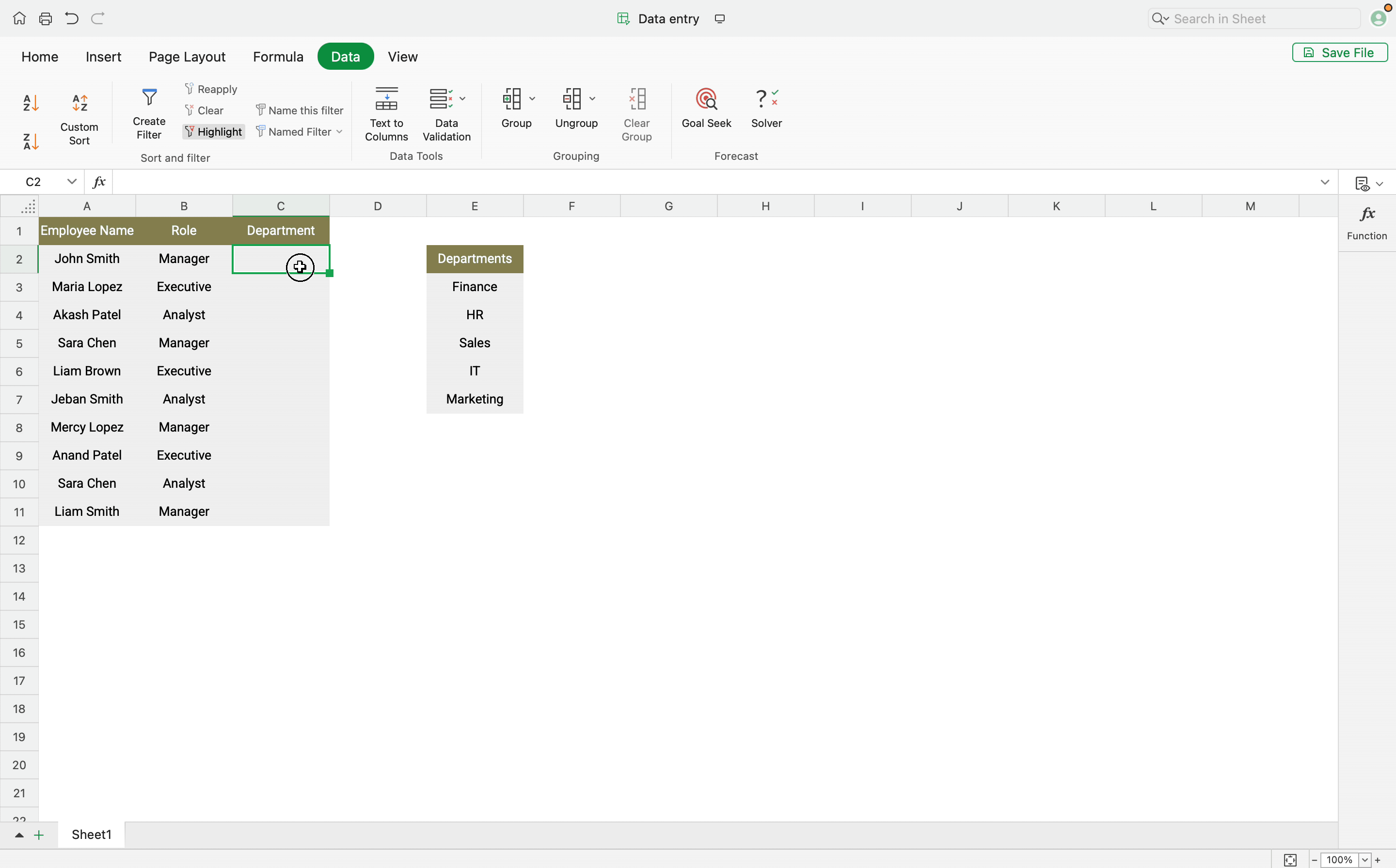 - Under the Data tab, select Data Validation