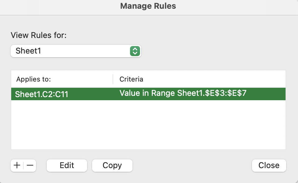 - Click Edit, Copy, or Delete to modify, duplicate, or remove the rule, respectively.
