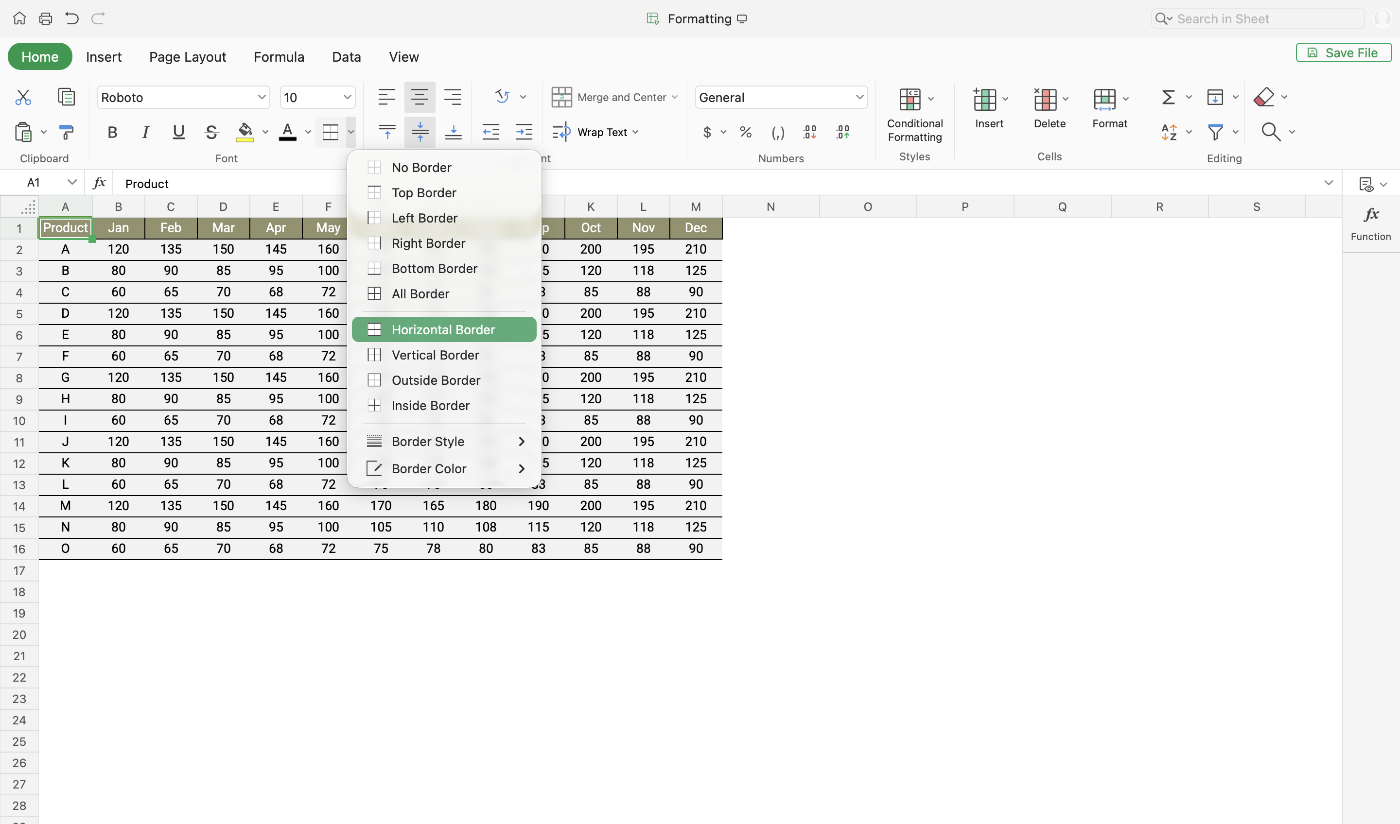 NotesIf you select a range like C1:D6, and apply a left border, the border will only appear along the left edge of cells C1:C6.