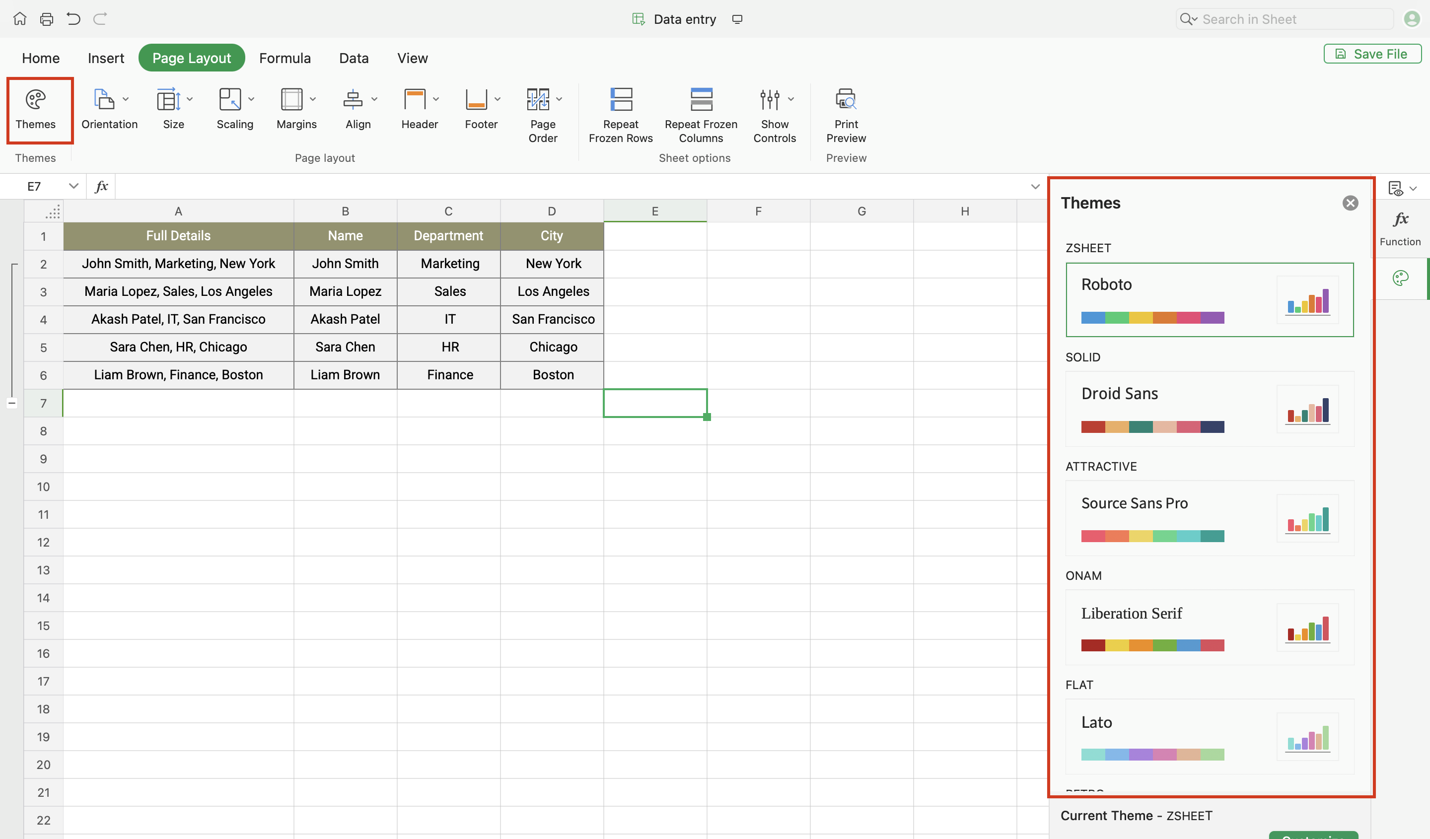 Apply themes to your spreadsheet