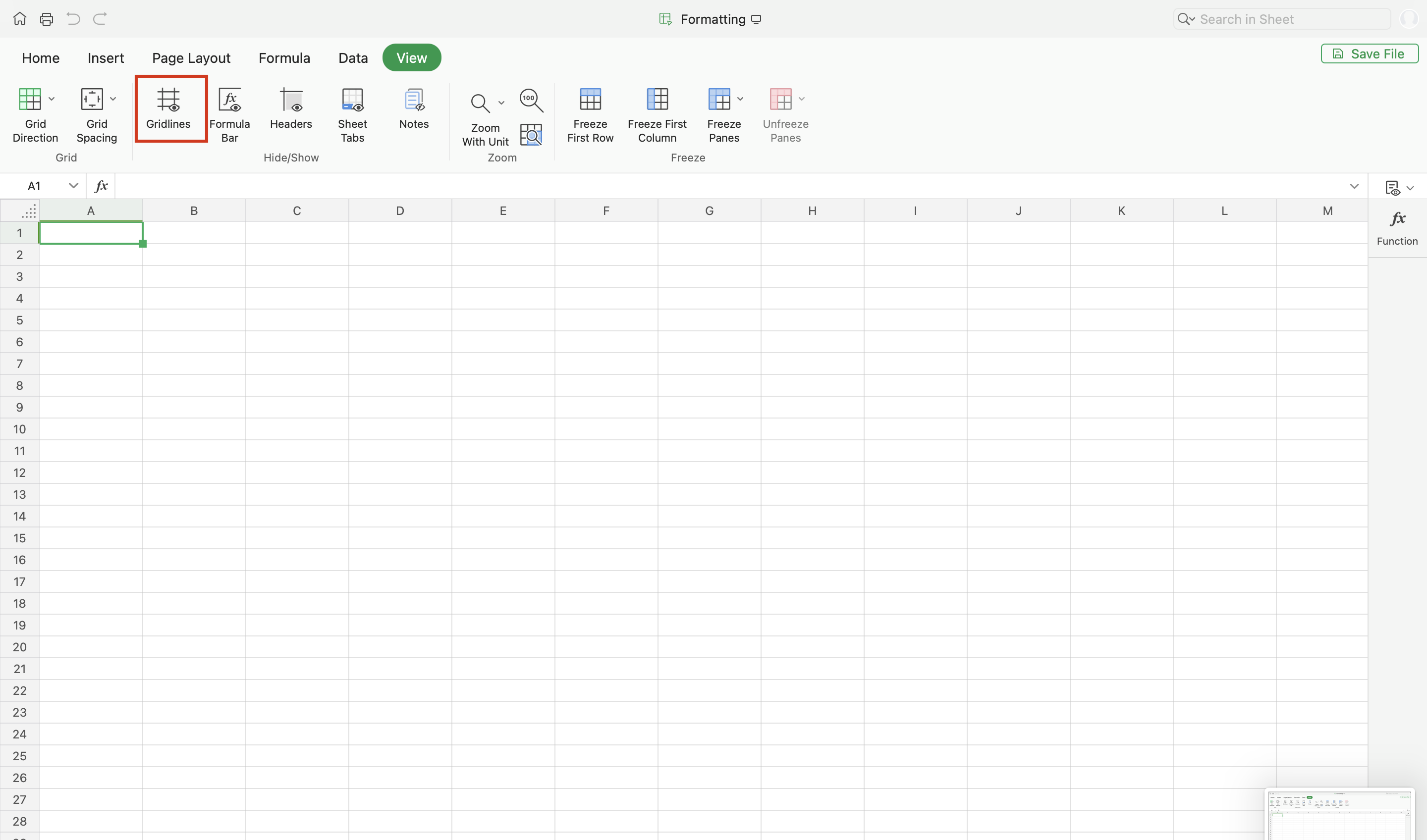 To show/hide gridlines: