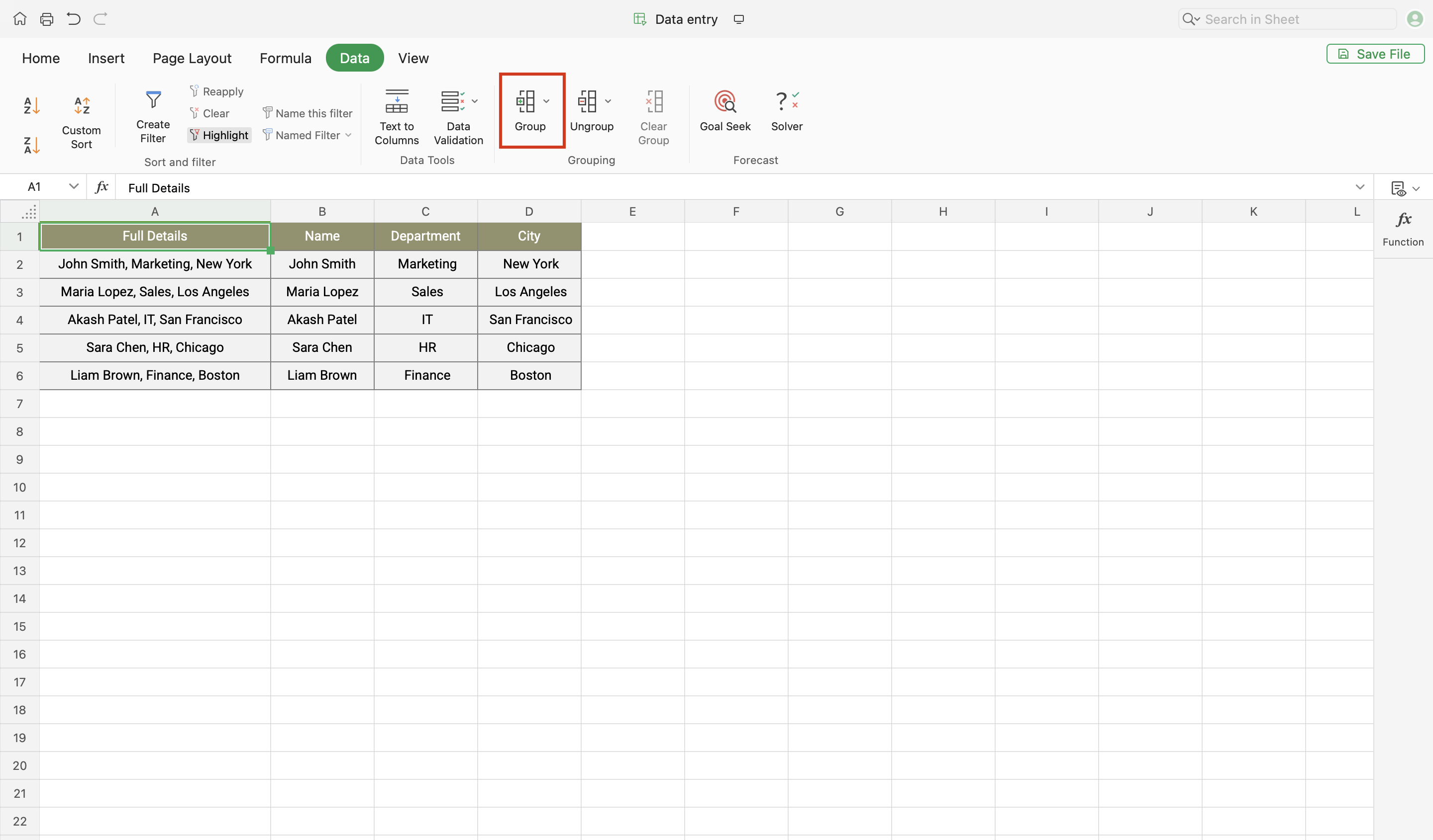 - Go to Data > Group