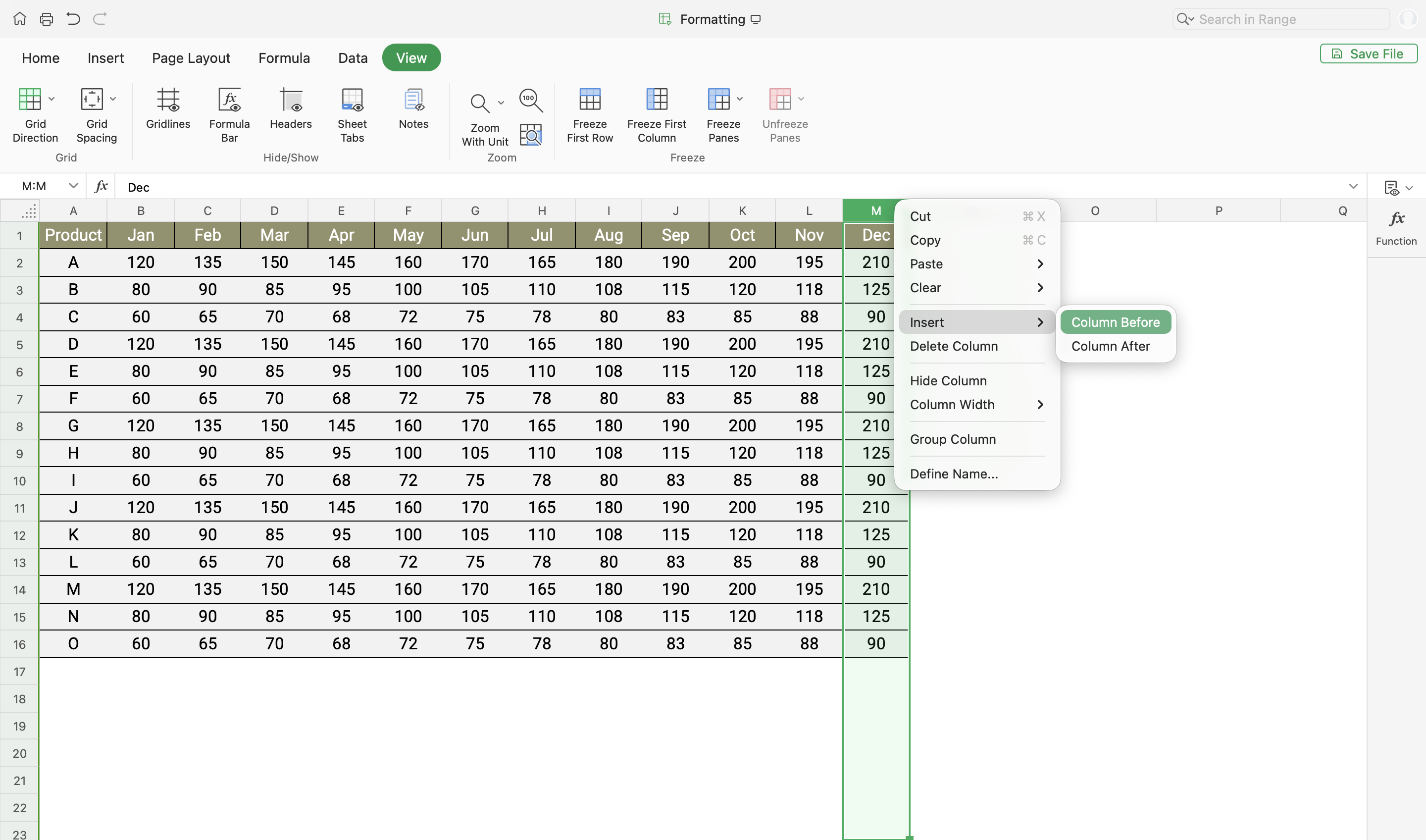 Alternatively, you can right-click on a cell and choose Insert Row or Column from the contextual menu. - Select if you want the row to be inserted above the selected row or below the selected row.