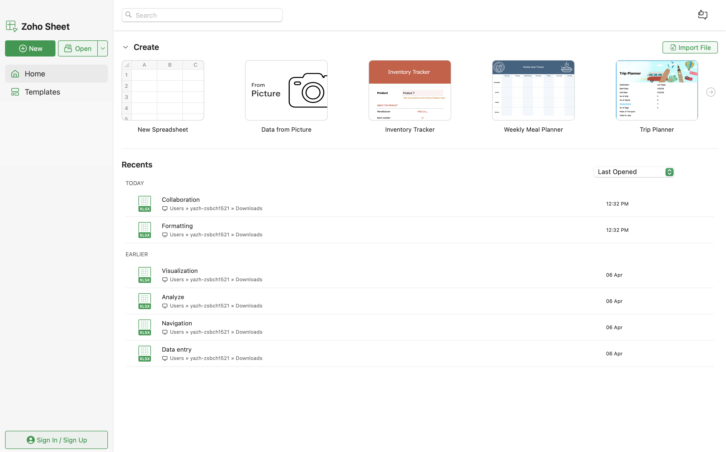 To create a new spreadsheet from templates, open the app and follow these steps: