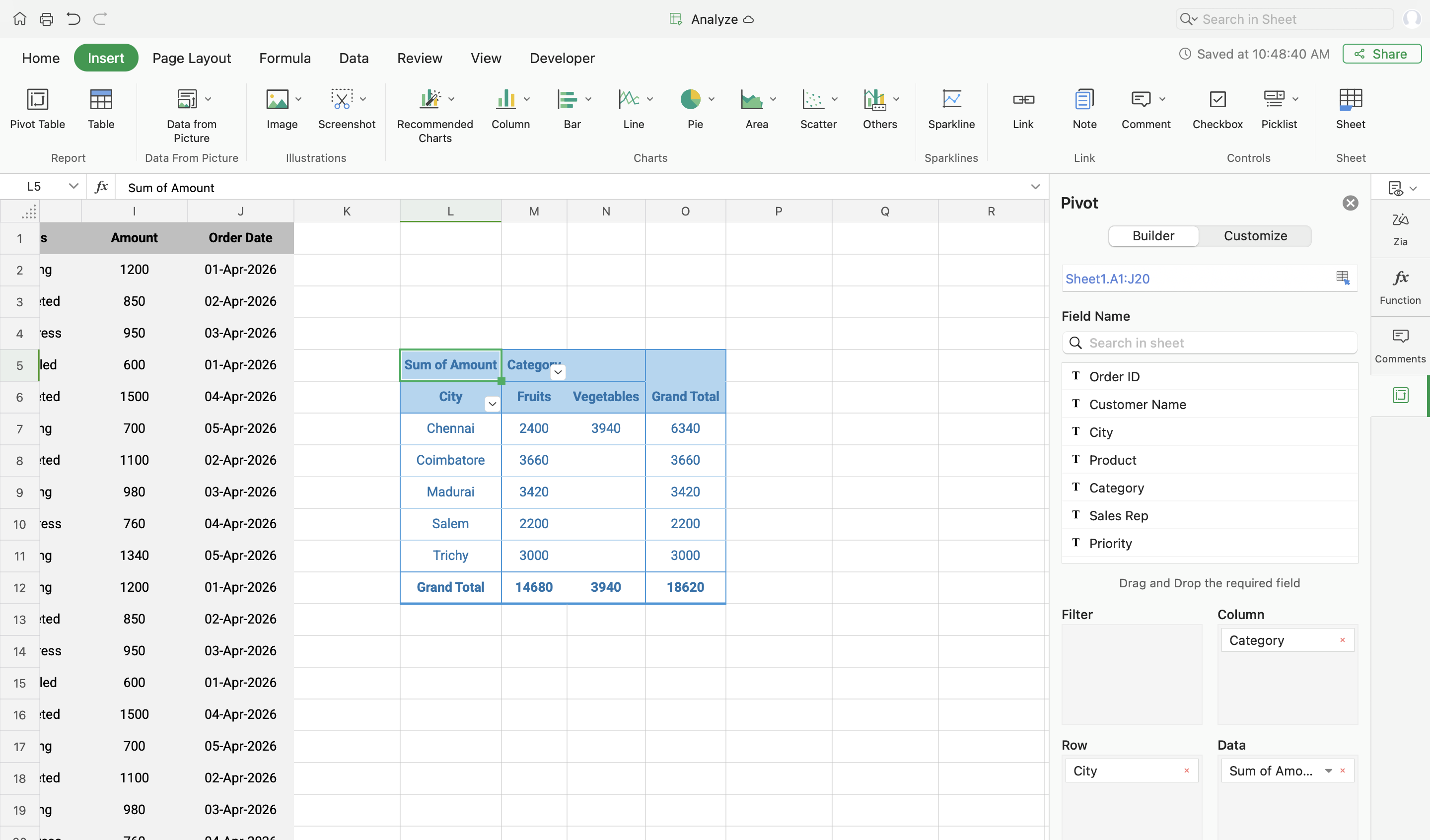 - Drag and drop the required fields into the rows, columns and data sections of the pivot table.