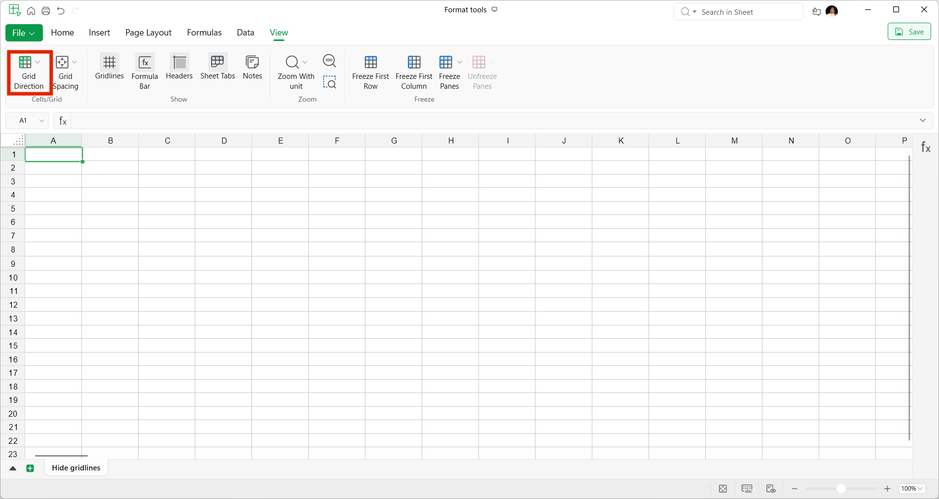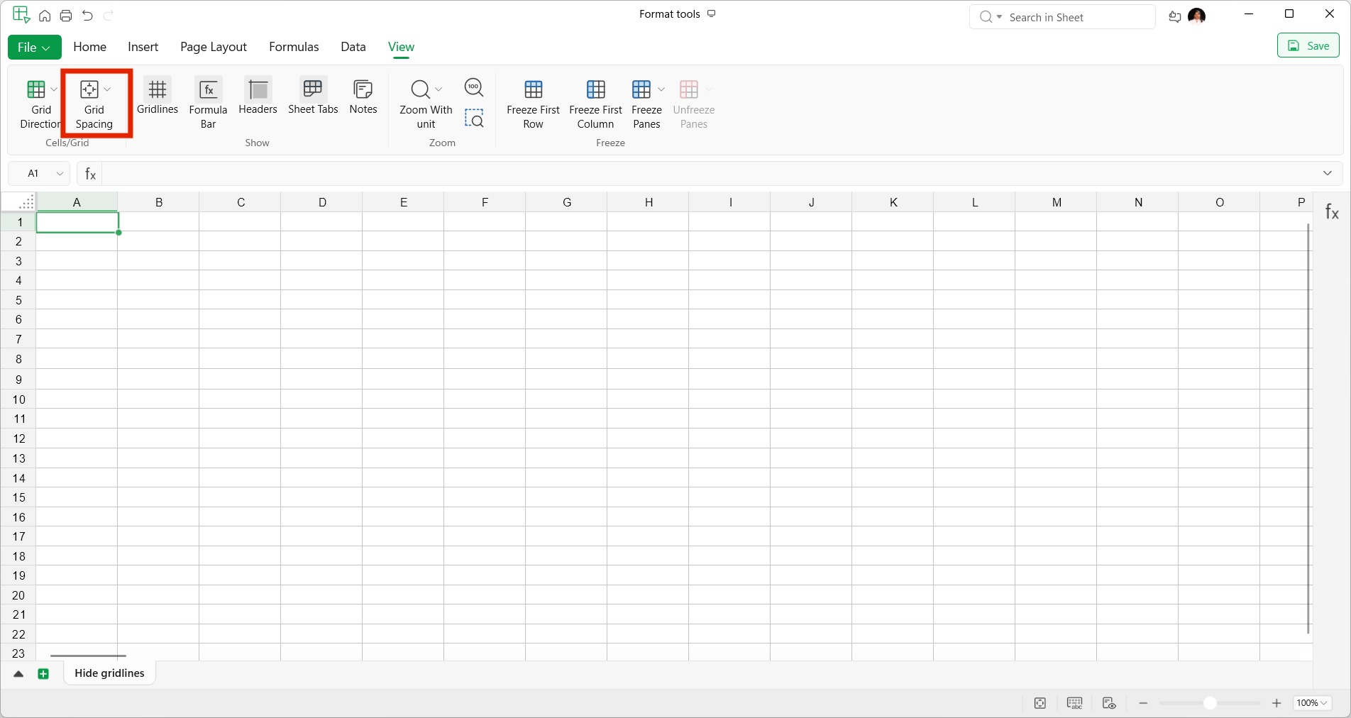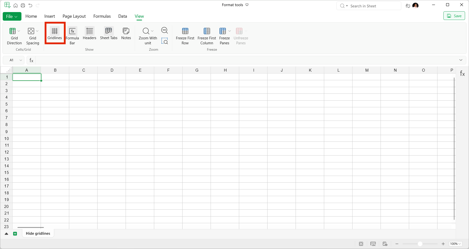 1. Go to View and use the Gridline icon   to show/hide gridlines.