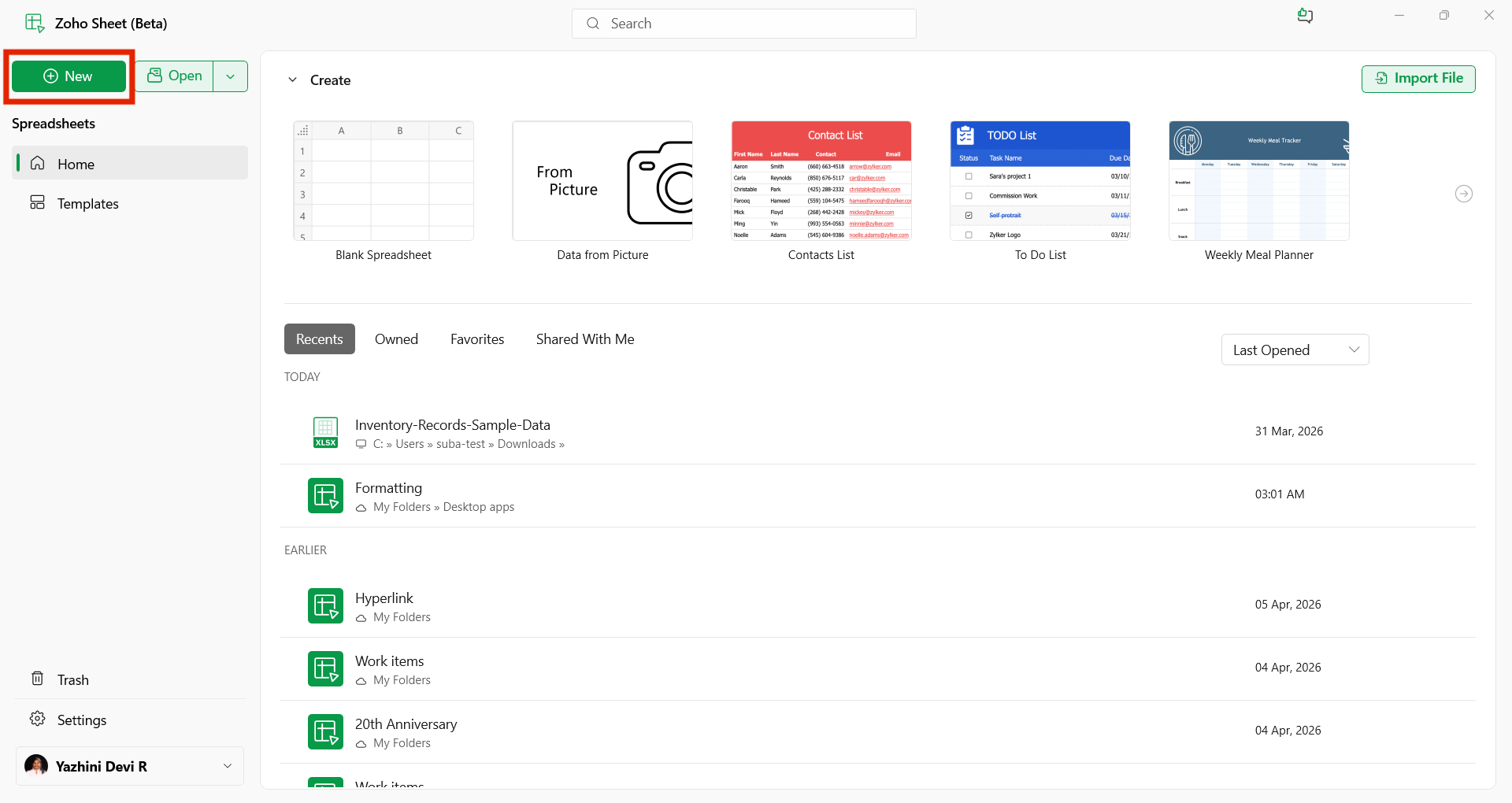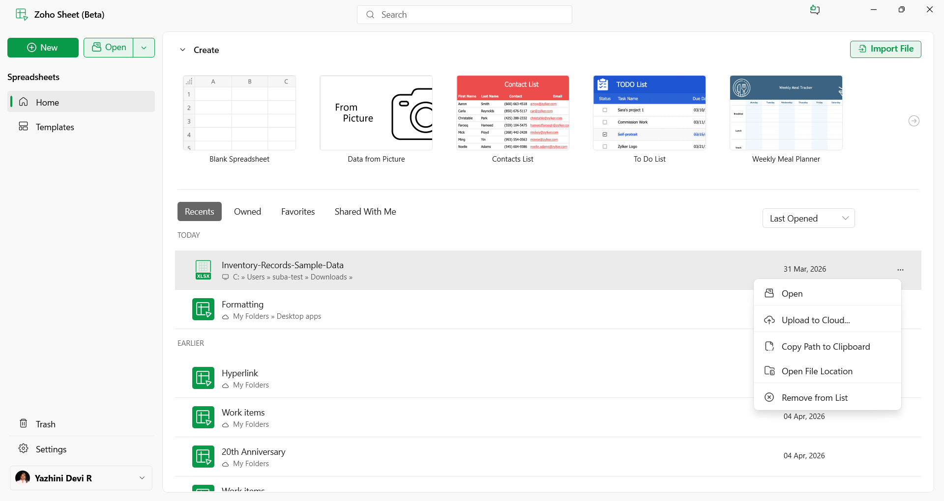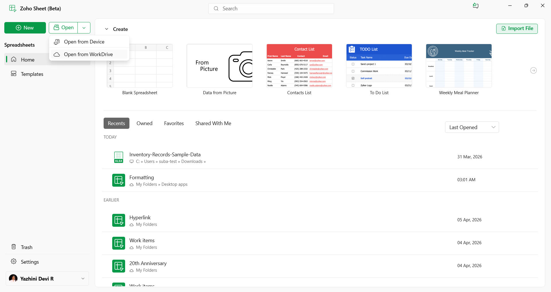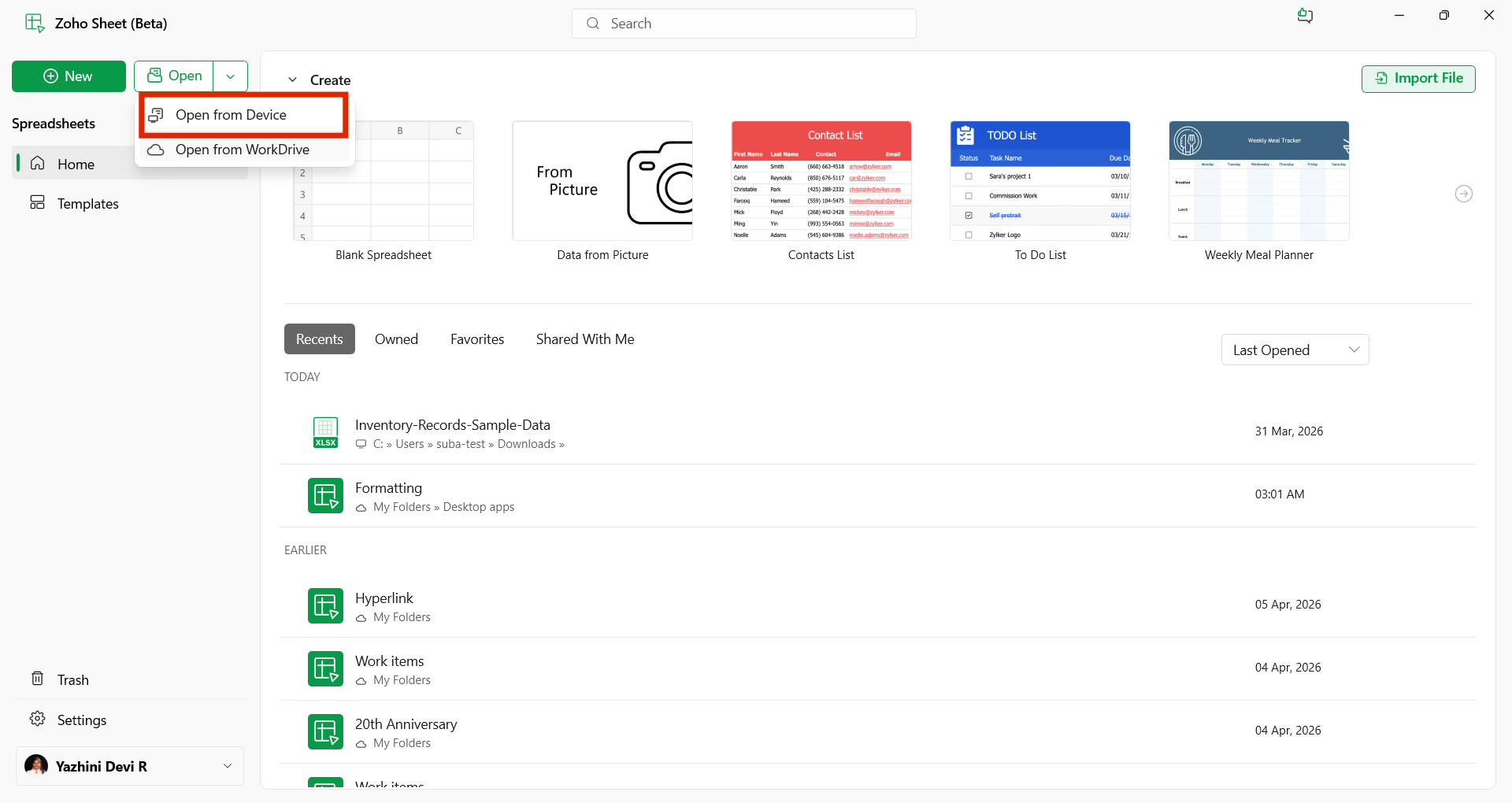 Open a file from your Zoho account
