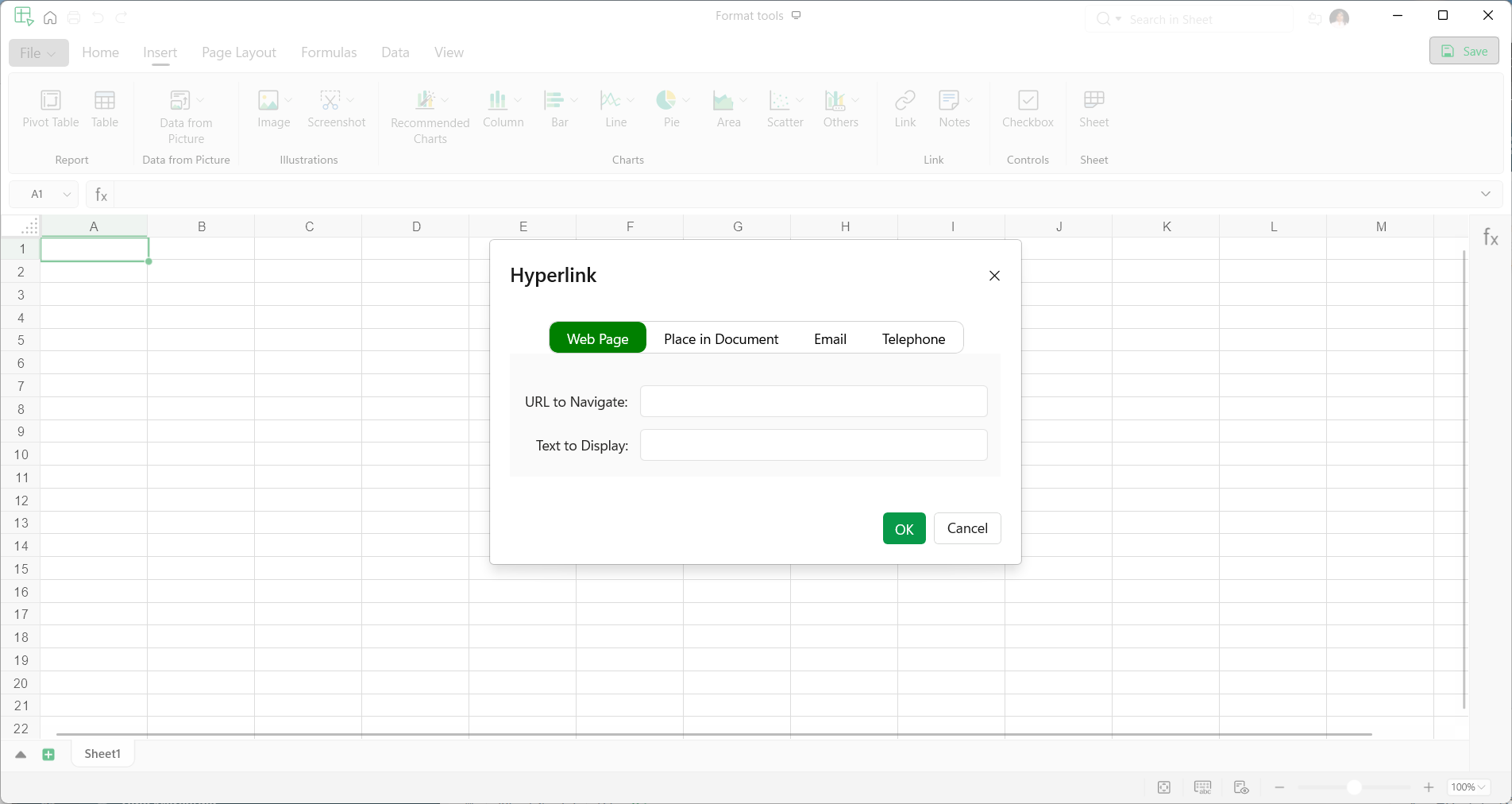 - Web pages - To insert the desired website link into the cell.