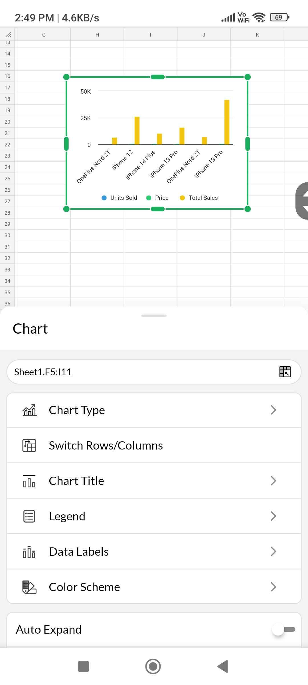 You can customize the chart's source, color, axis labels, legend, and more from the list of options displayed.