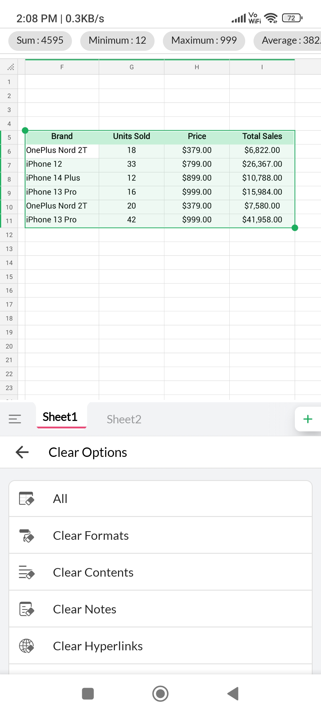 From the given list, you can choose to clear the content, formats, conditional formats, data validation, notes, and hyperlinks.