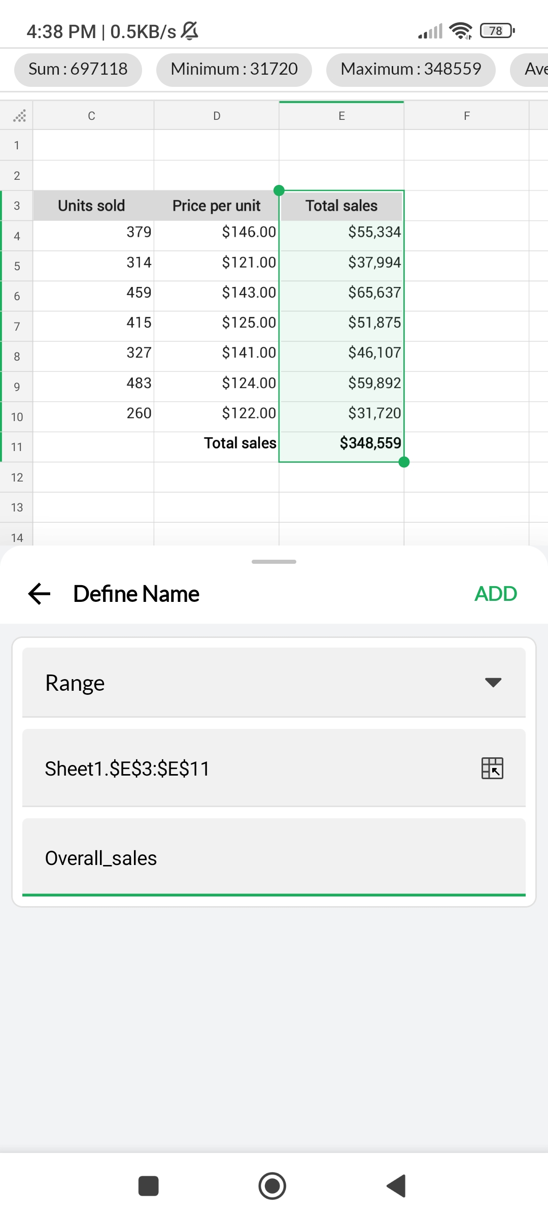You can choose to define a cell range, an expression, or a constant value from the drop-down menu.