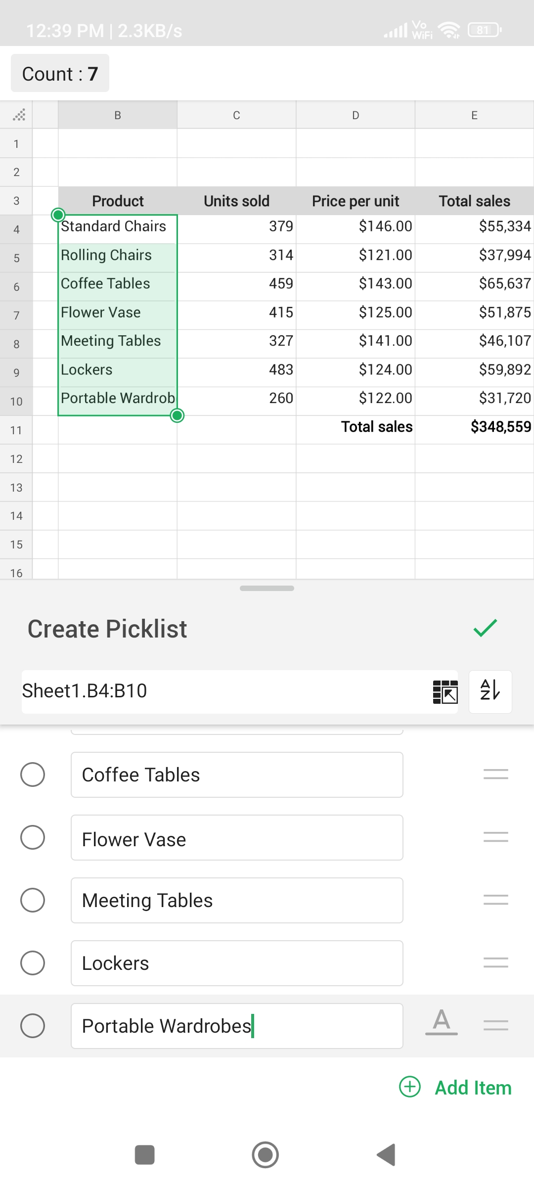 Alternatively, to create a picklist, select the desired cell range and follow steps 2 to 4.