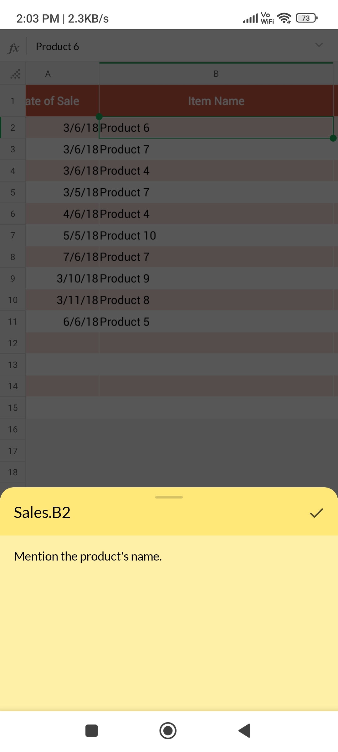 Tap the desired cell on which you wish to insert the note.