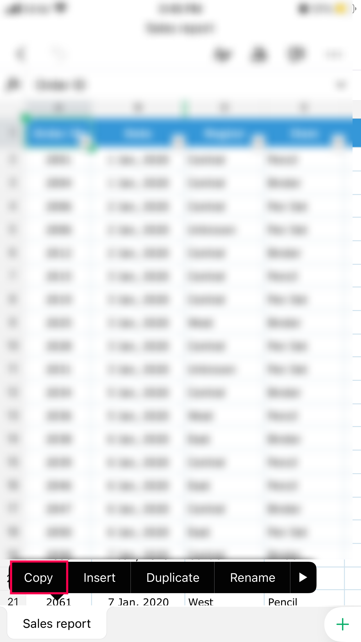 Copy a worksheet across spreadsheets | Zoho Sheet for iOS