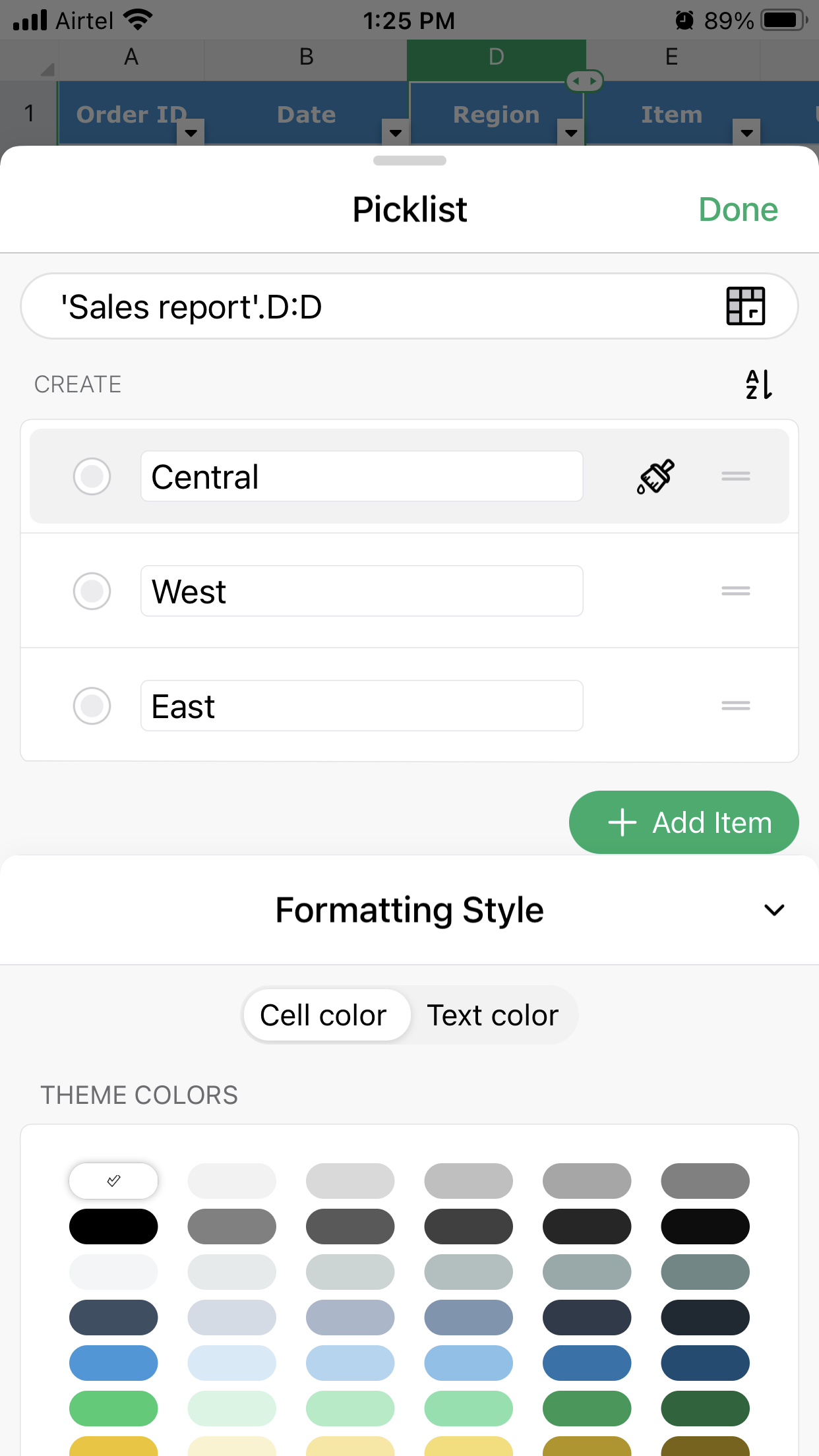 Create a picklist in a spreadsheet