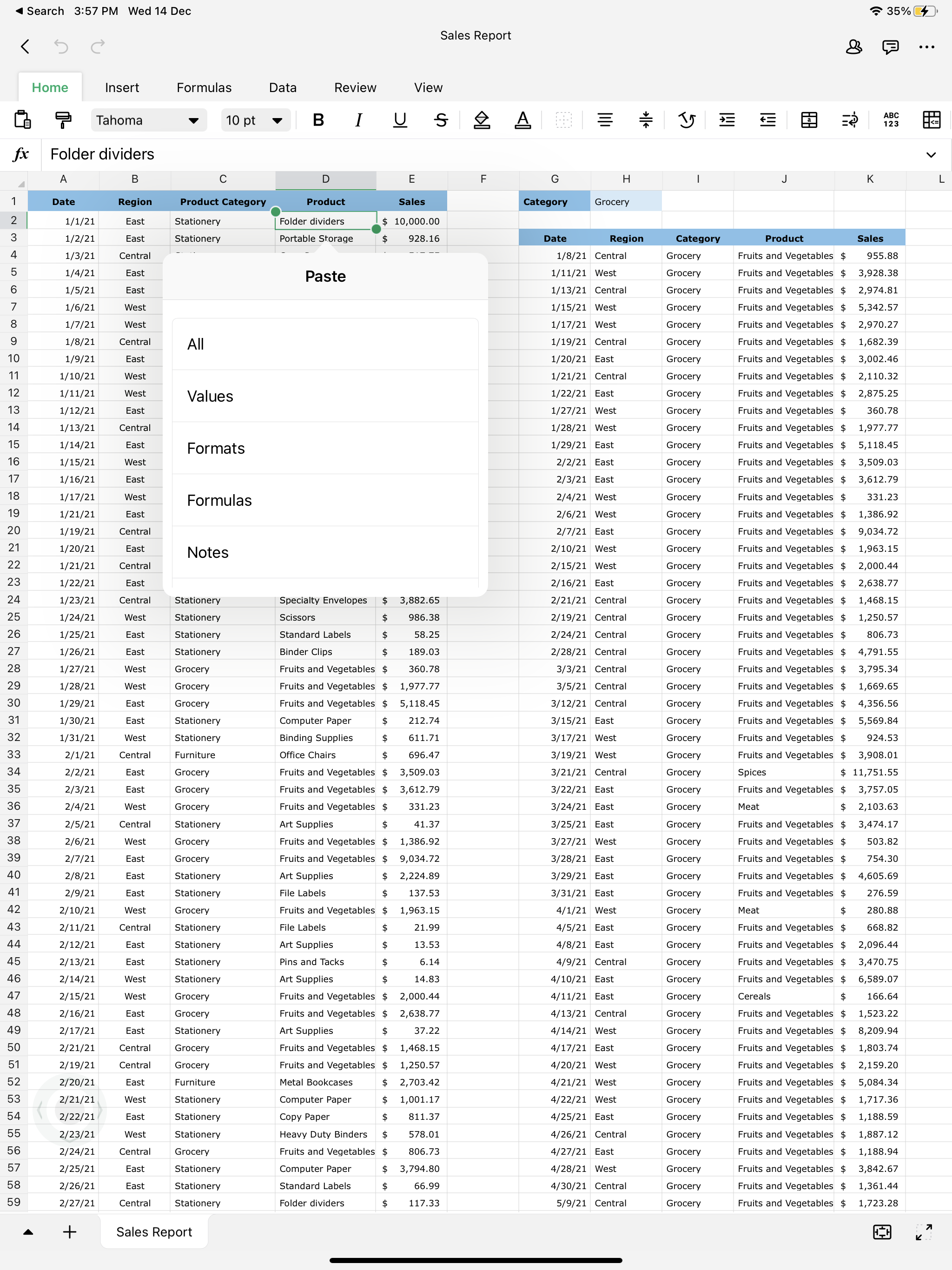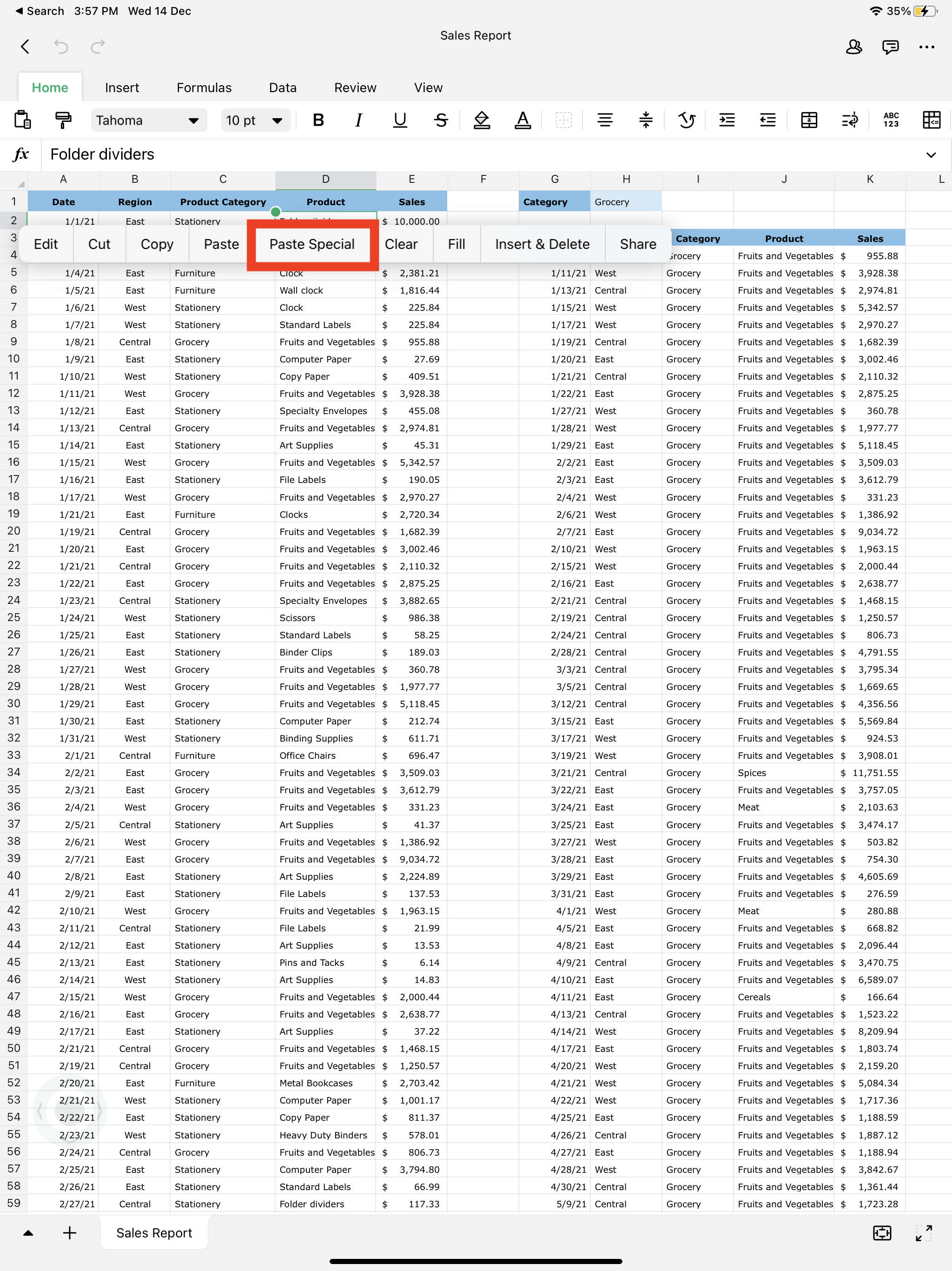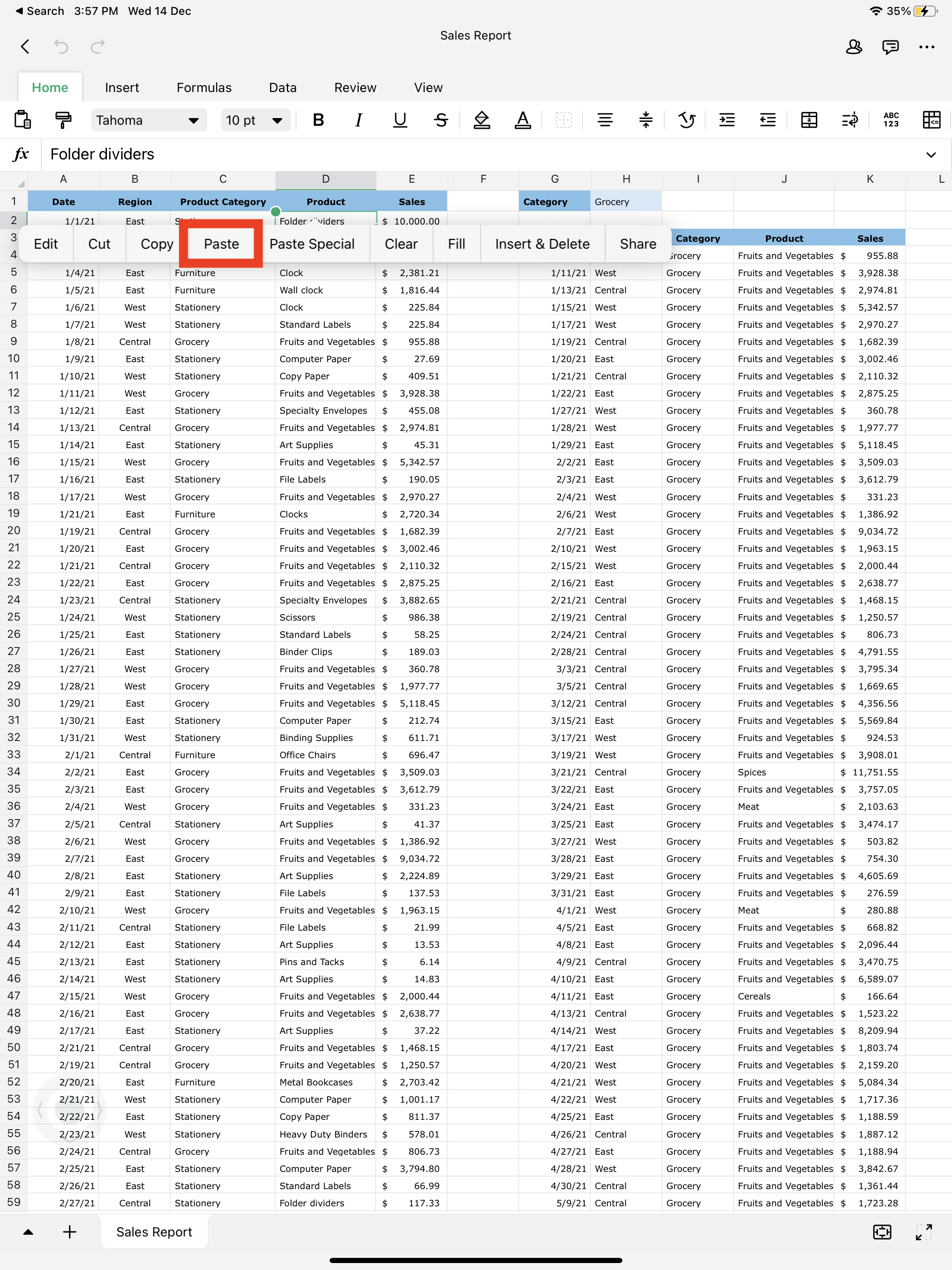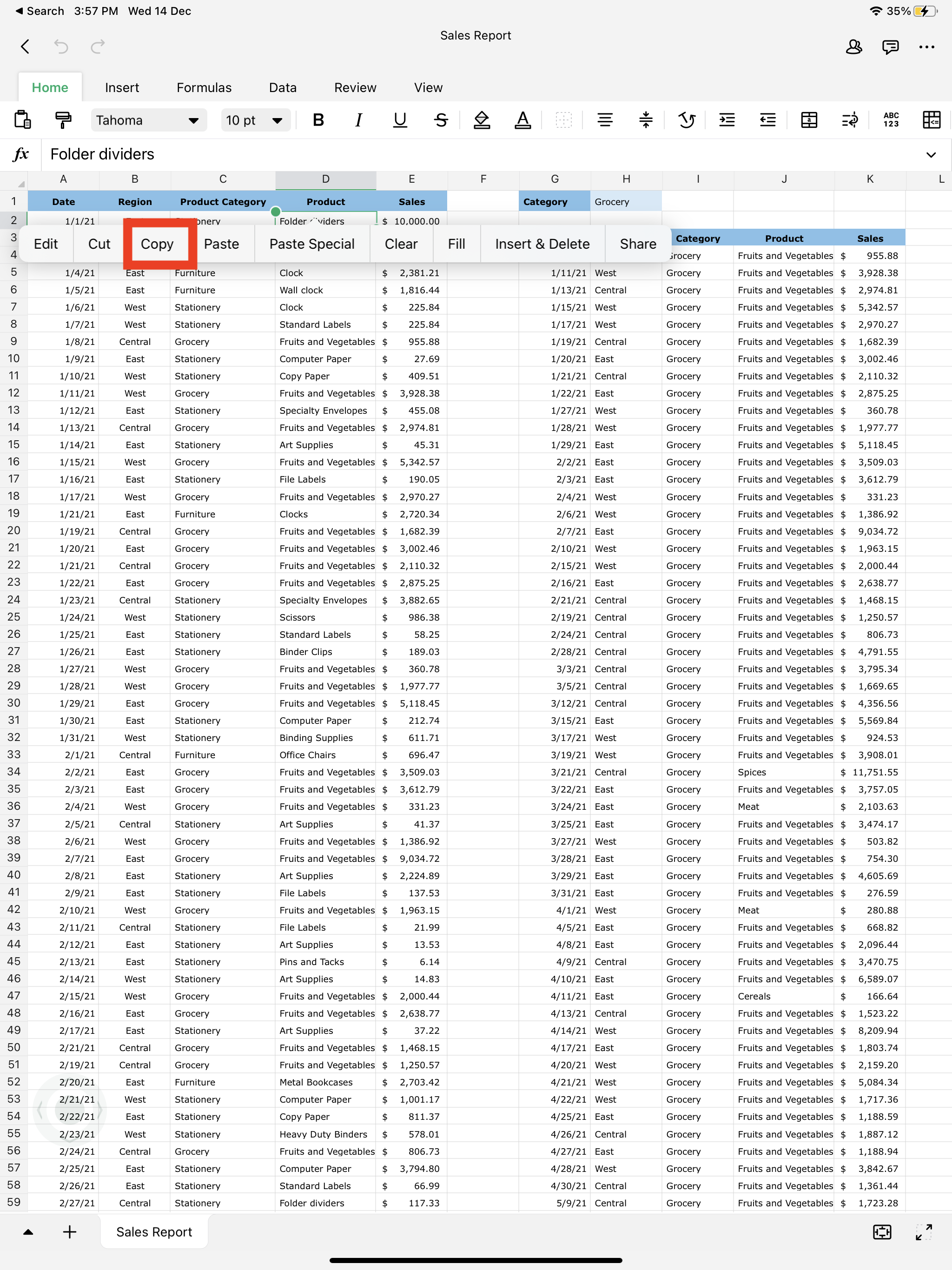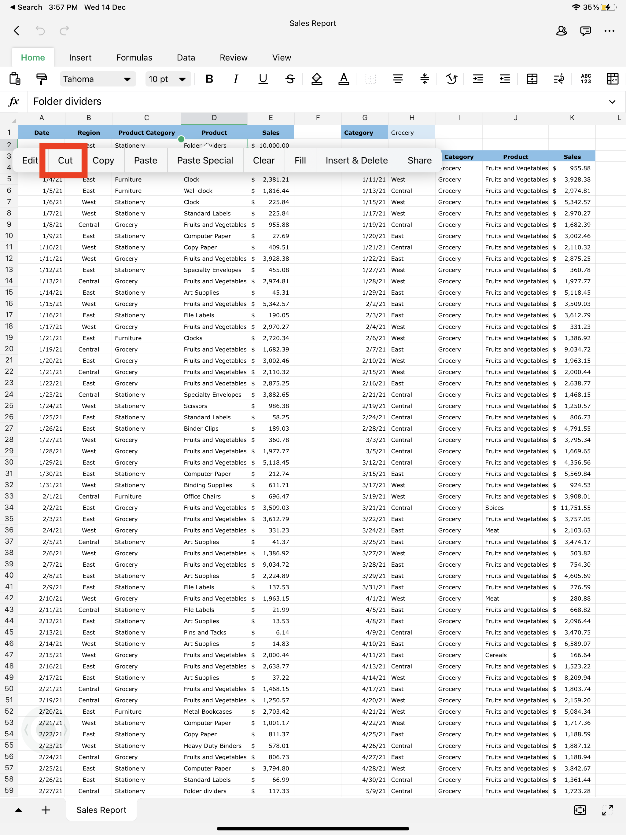 Cut/copy/paste data in your spreadsheet | Zoho Sheet for iPad