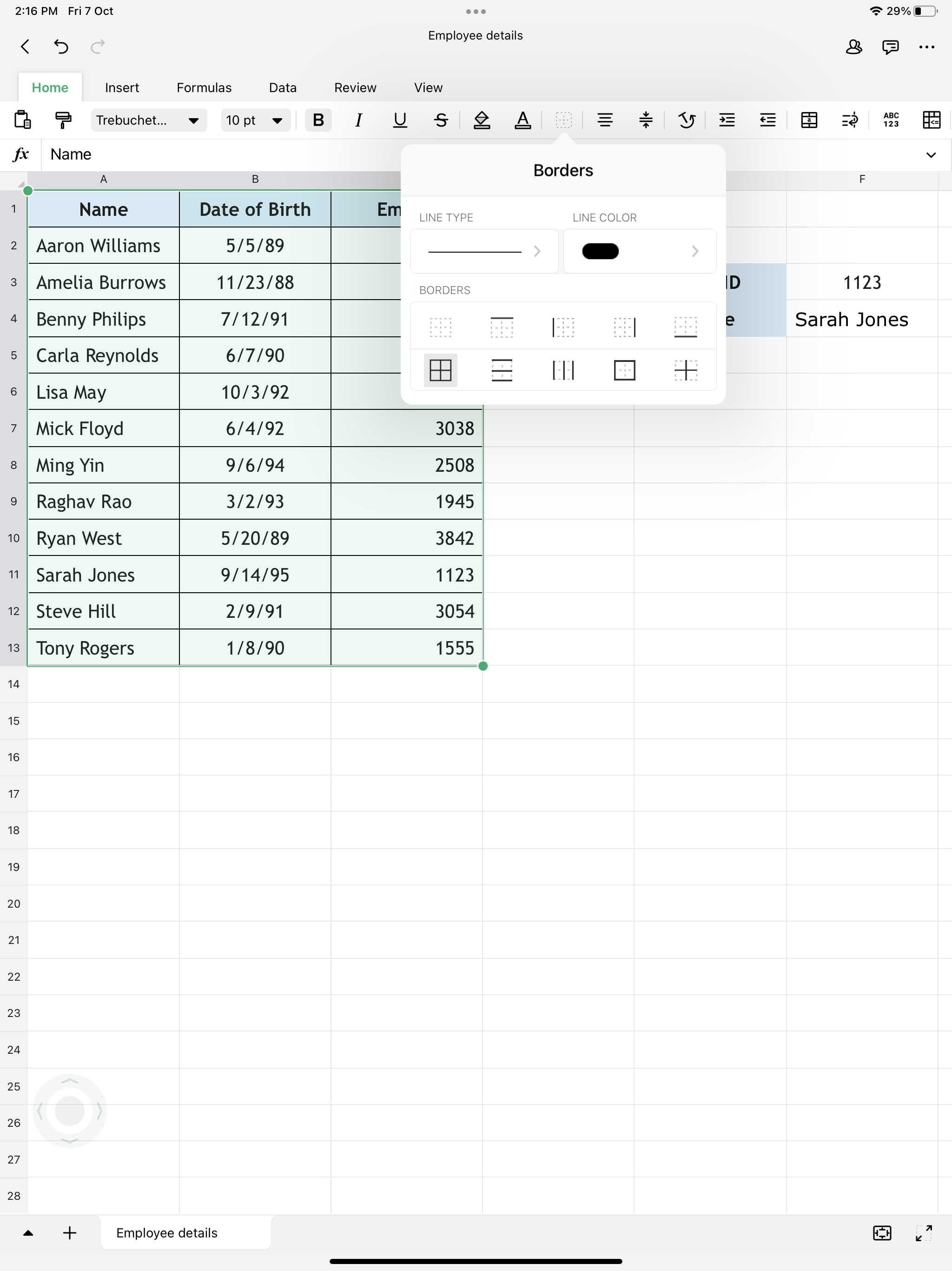 Borders | Zoho Sheet for iPad